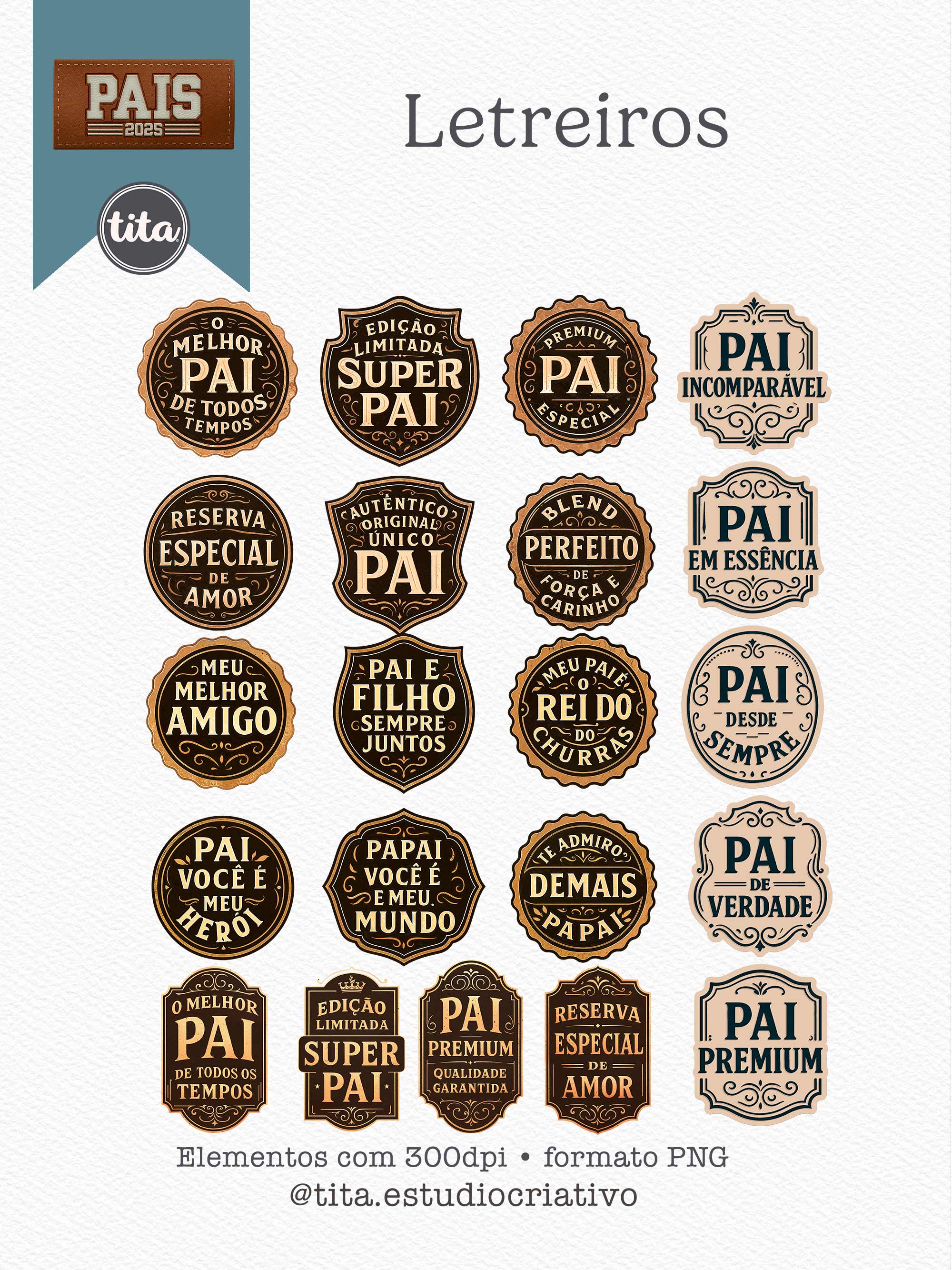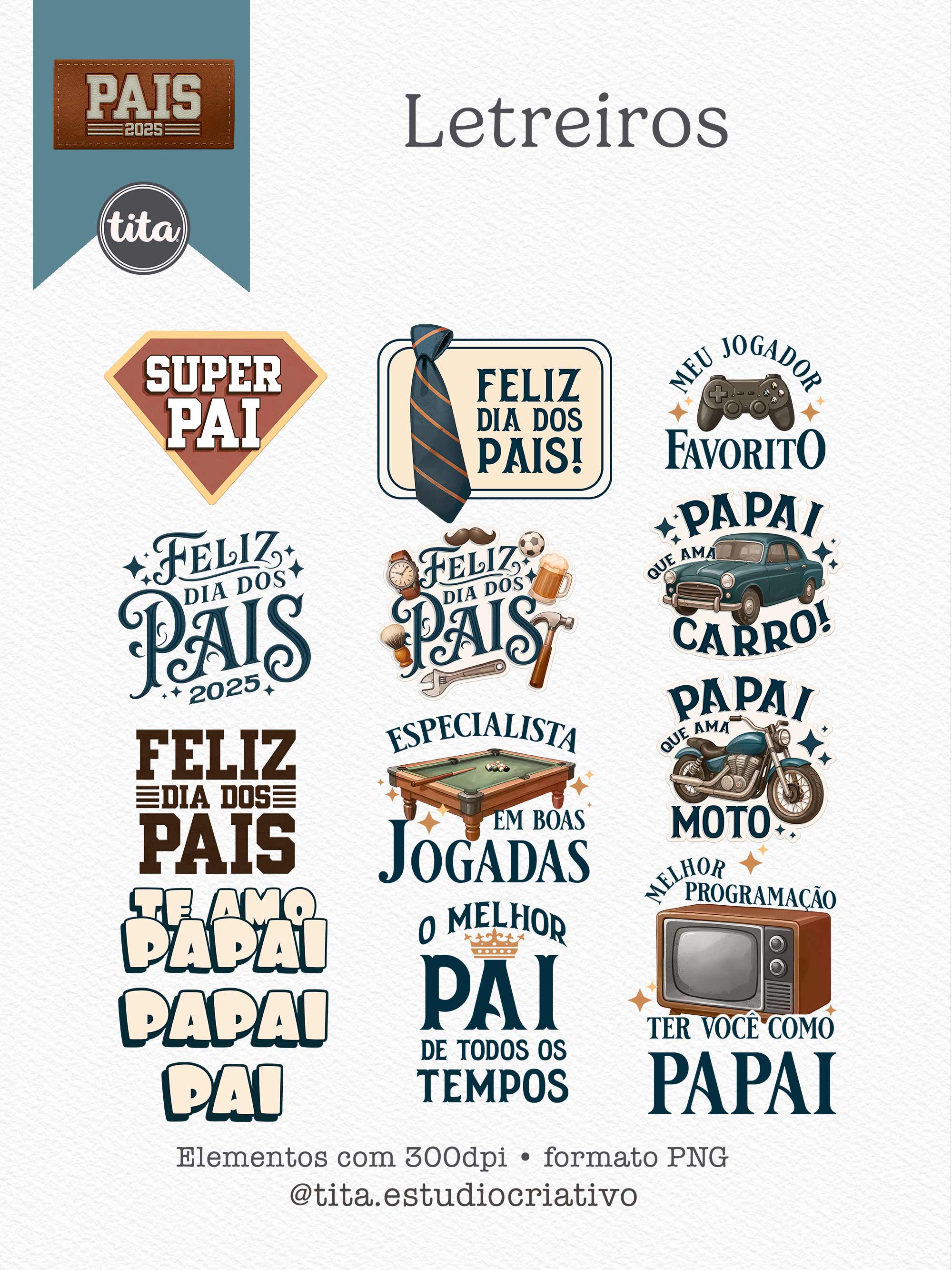 Pais 2025 -Letreiros contém imagens exclusivas que tornarão os seus projetos mais encantadores. Criados exclusivamente para o Tita Estúdio Criativo . Arquivos com resolução 300dpi.