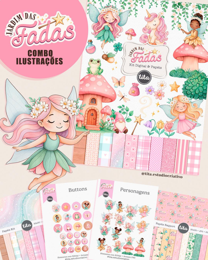 Jardim das Fadas - Combo Ilustrações e Papéis