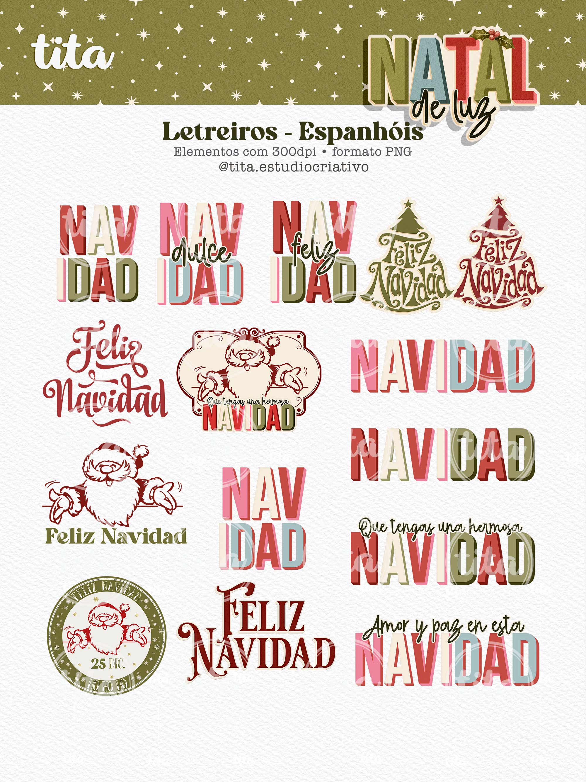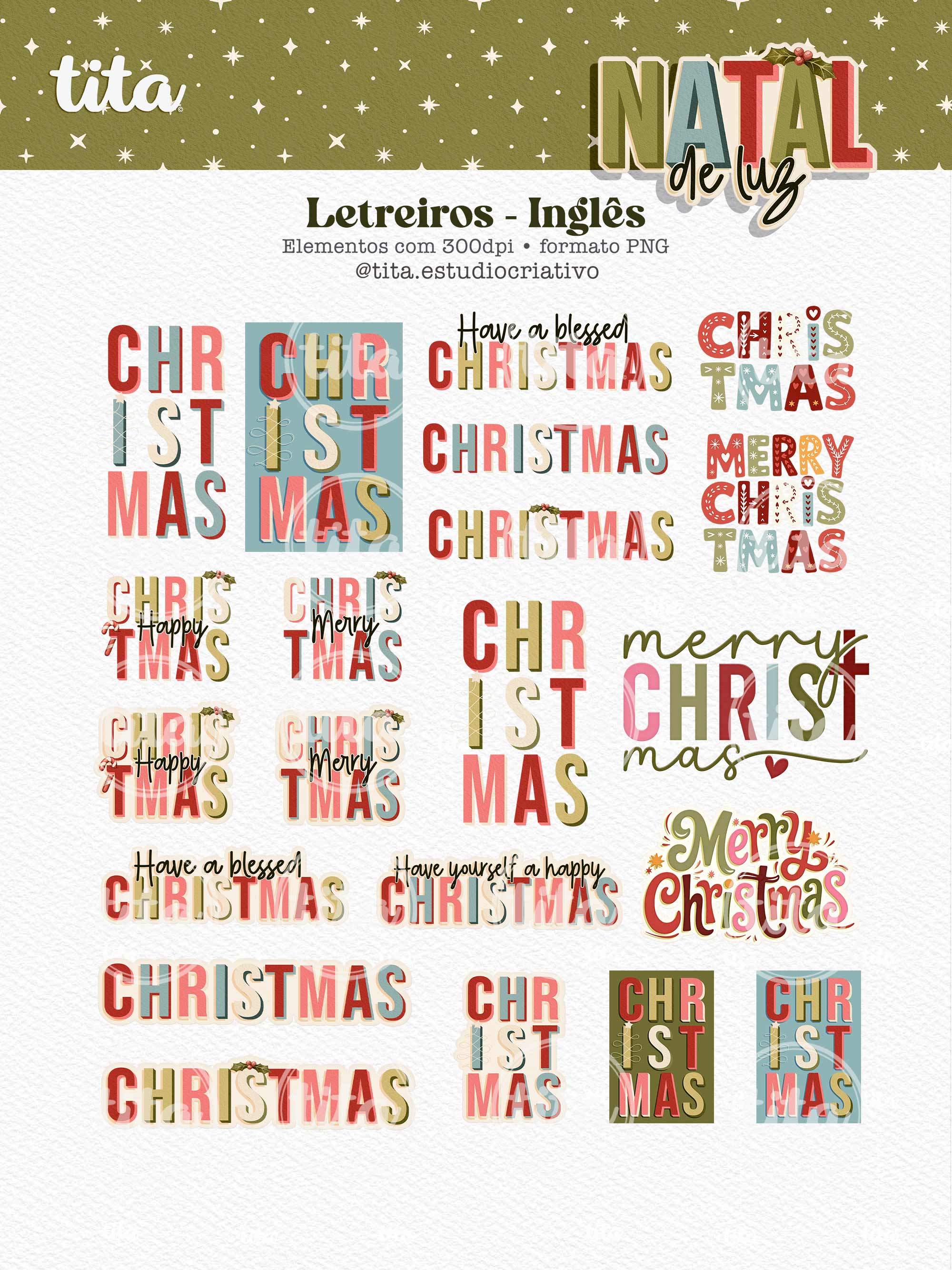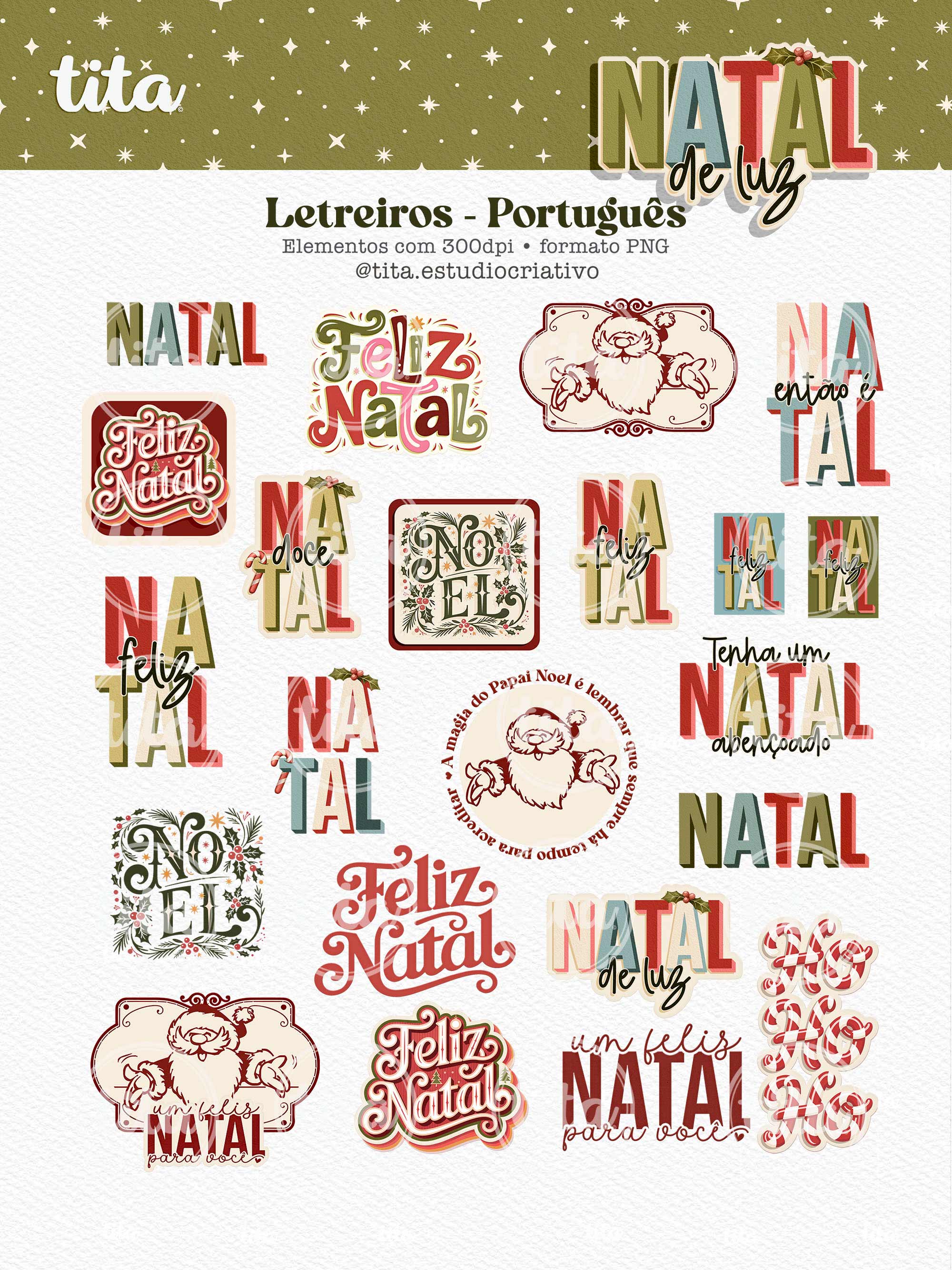 Natal de Luz - Letreiros contém imagens exclusivas que tornarão os seus projetos mais encantadores. Criados exclusivamente para o Tita Estúdio Criativo . Arquivos com resolução 300dpi.