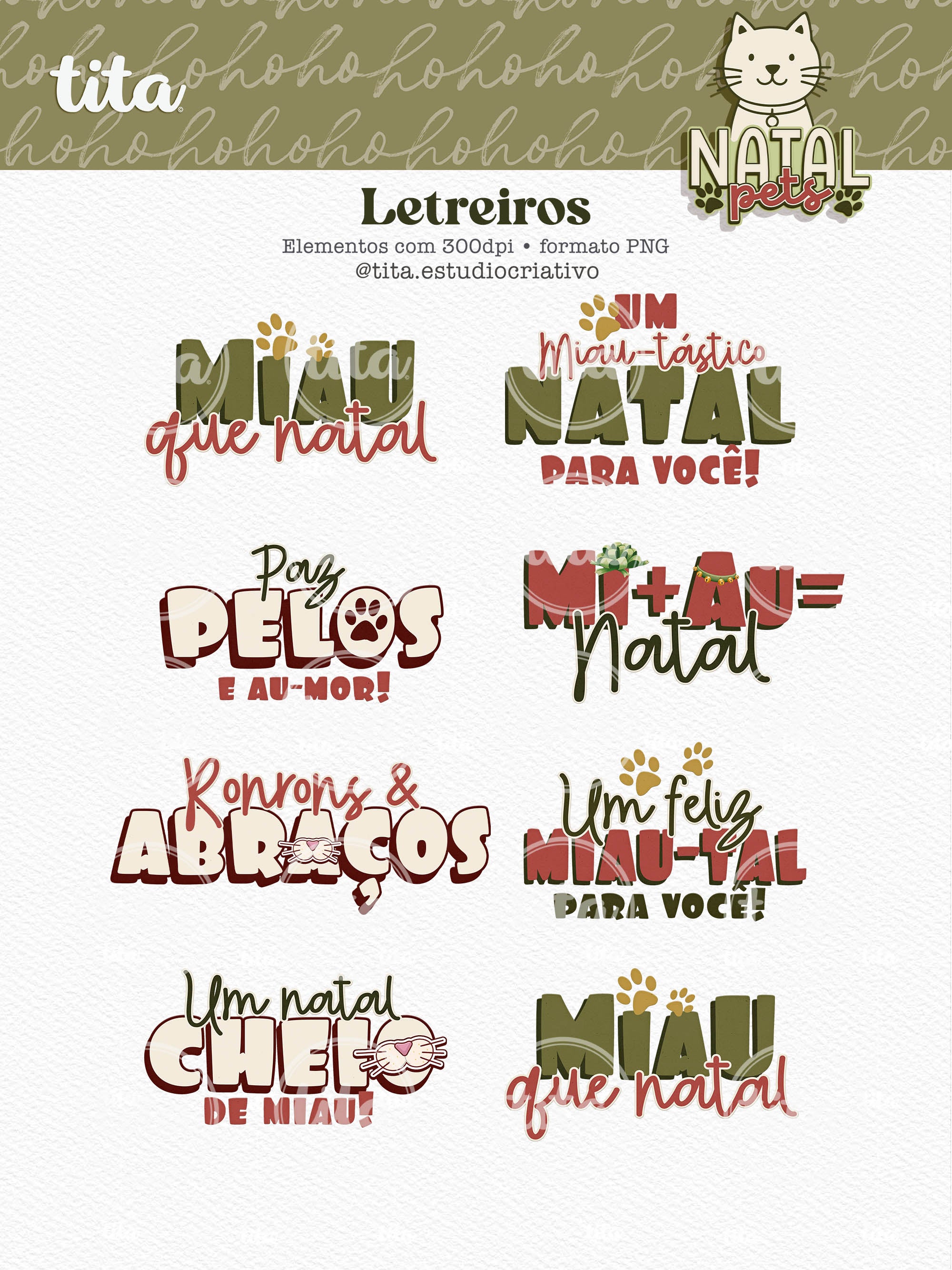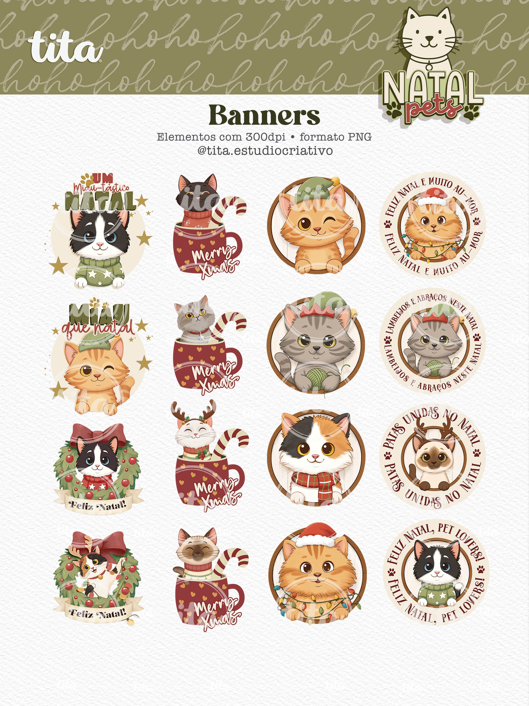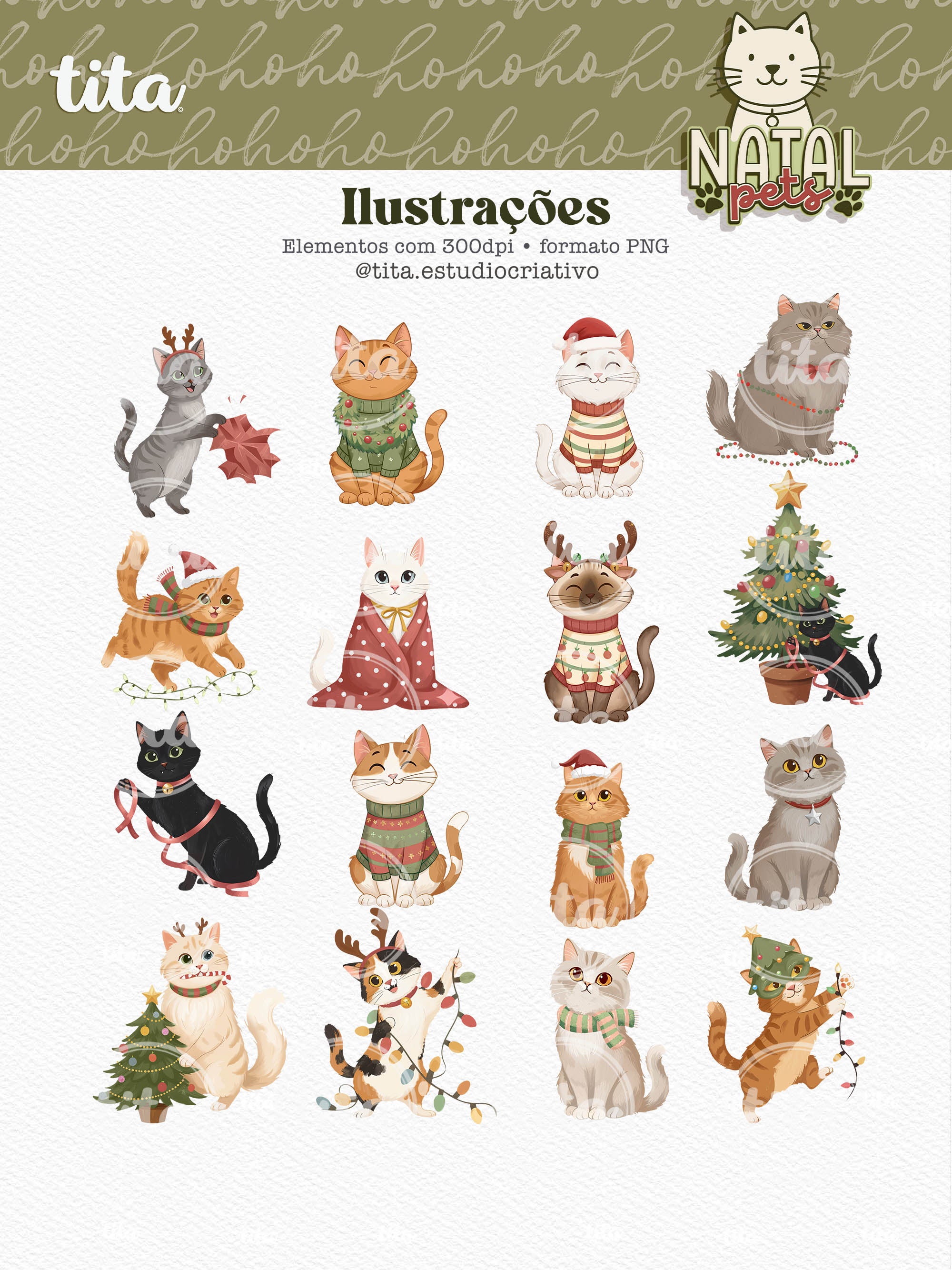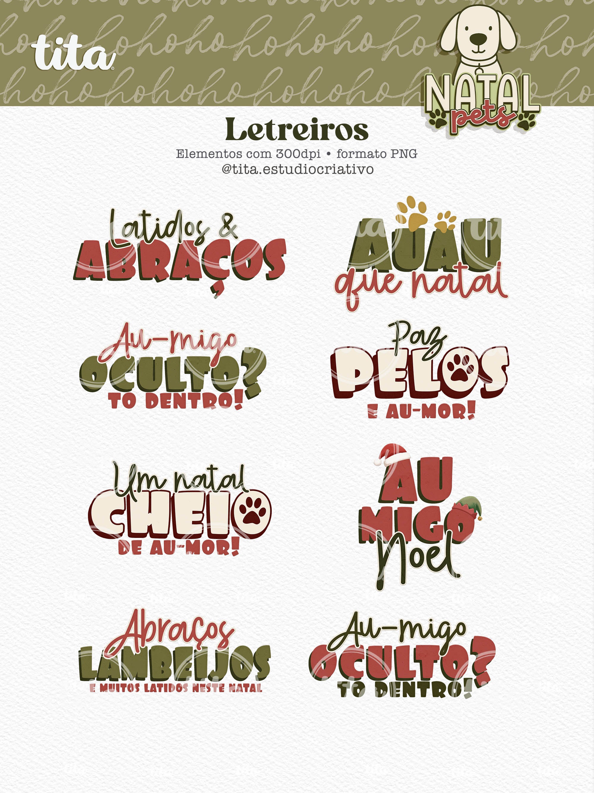 Natal Pets - Combo Ilustrações contém imagens exclusivas que tornarão os seus projetos mais encantadores. Criados exclusivamente para o Tita Estúdio Criativo . Arquivos com resolução 300dpi.
