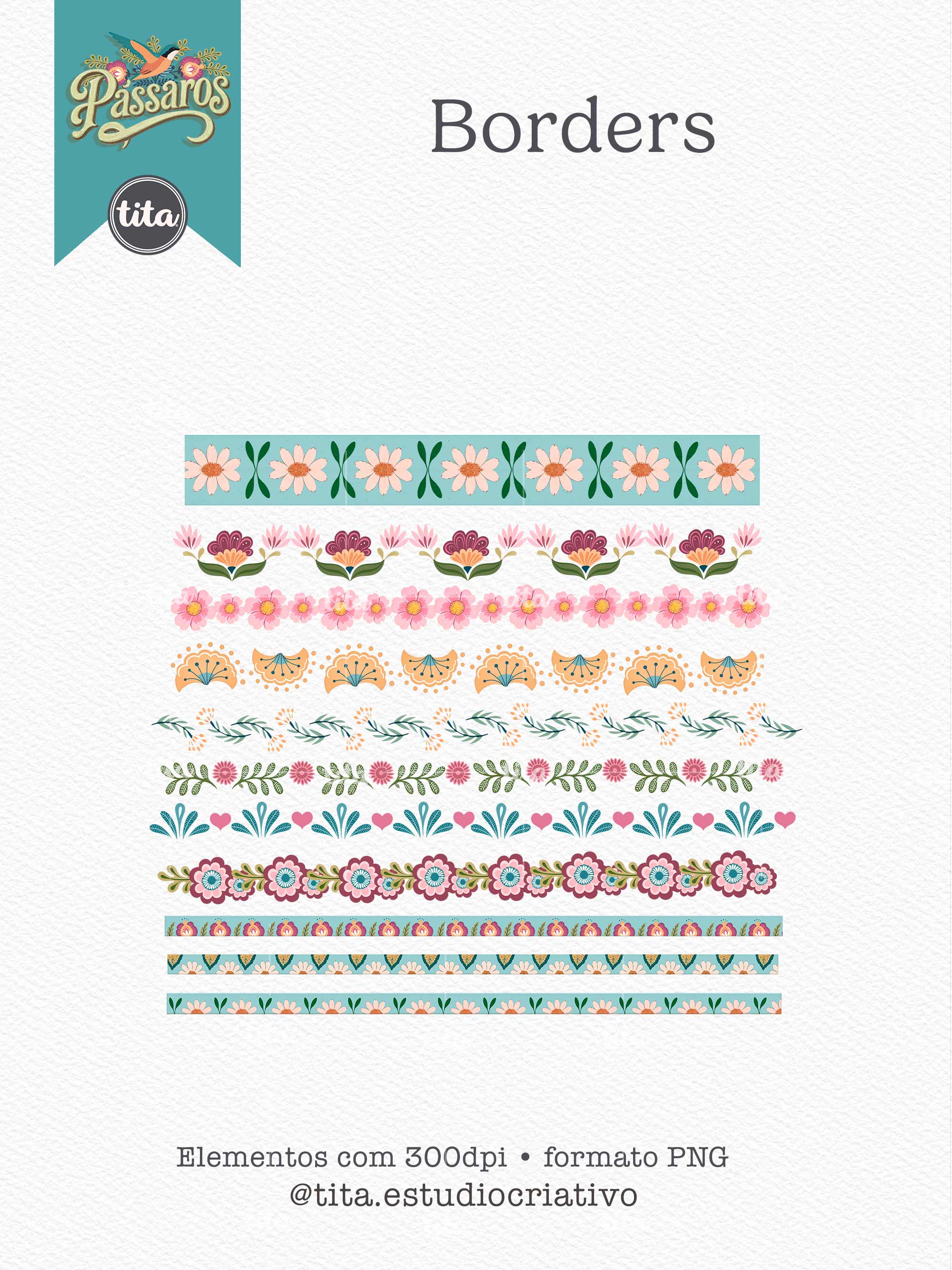 Pássaros - Borders contém imagens exclusivas que tornarão os seus projetos mais encantadores. Criados exclusivamente por Paty Greif para o Tita Estúdio Criativo. Arquivos com resolução 300dpi.