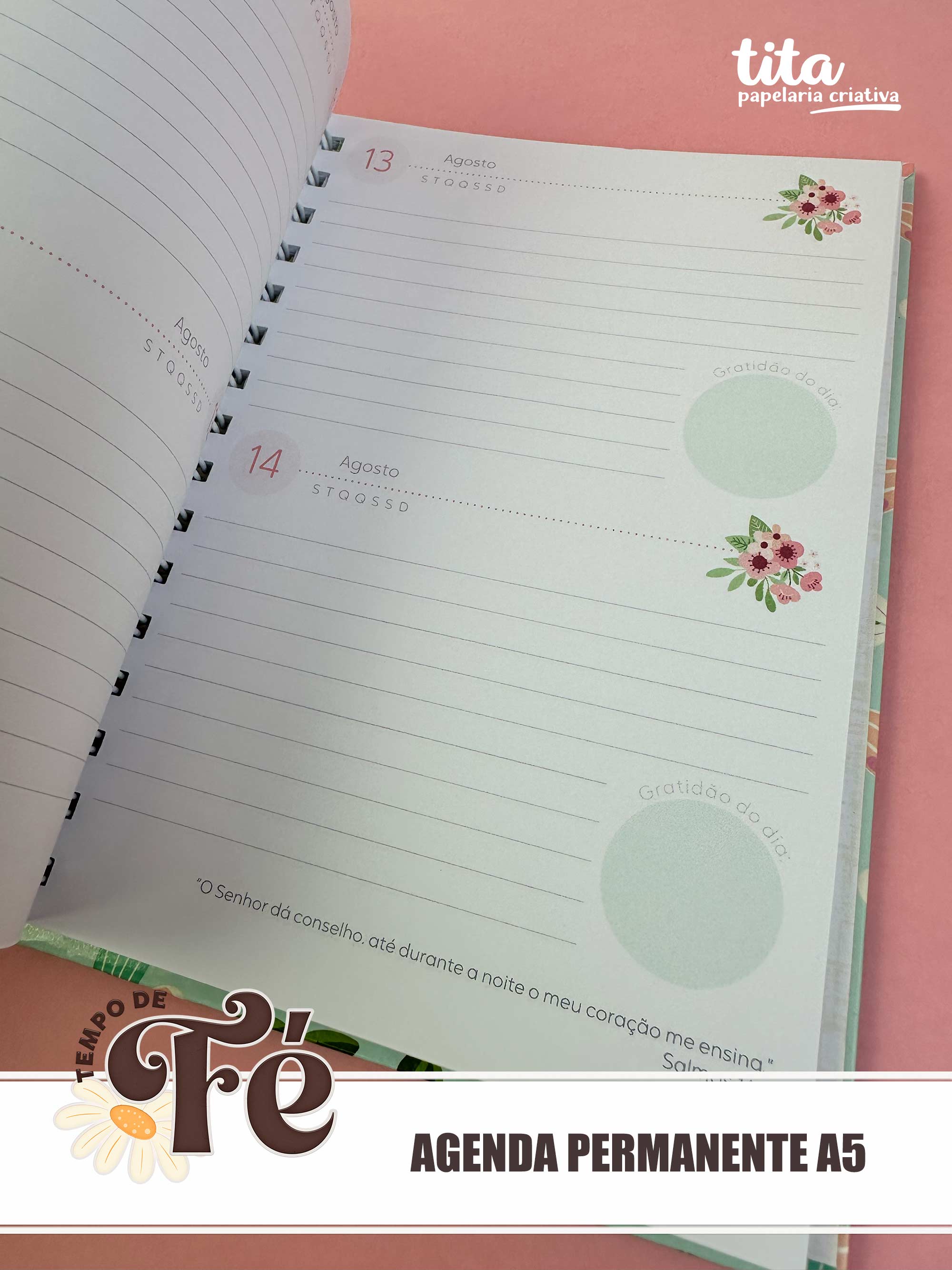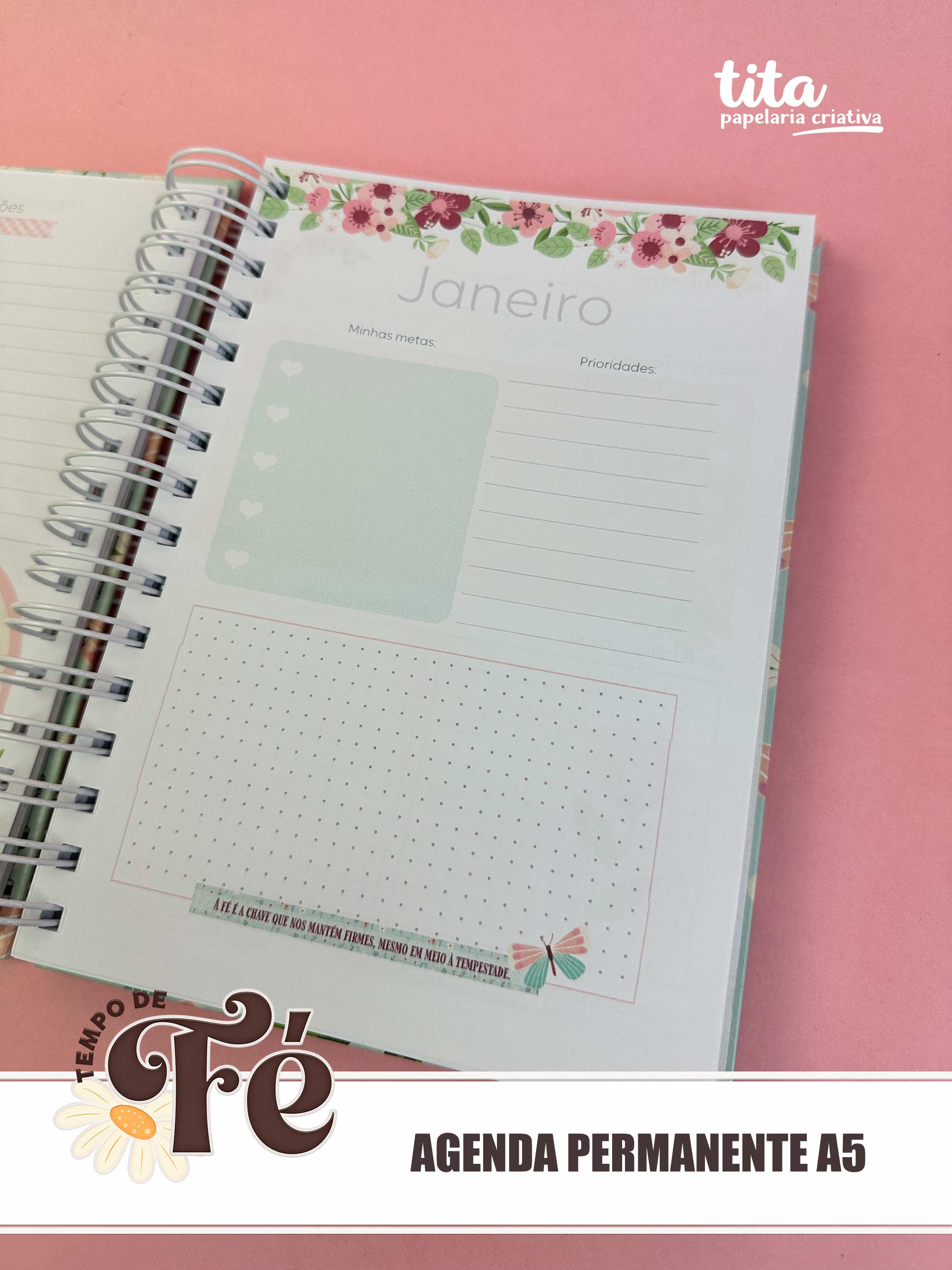 Tempo de Fé - Agenda Permanente A5  contém imagens exclusivas que tornarão os seus projetos mais encantadores. Criados exclusivamente por Paty Greif para o Tita Estúdio Criativo . Arquivos com resolução 300dpi.