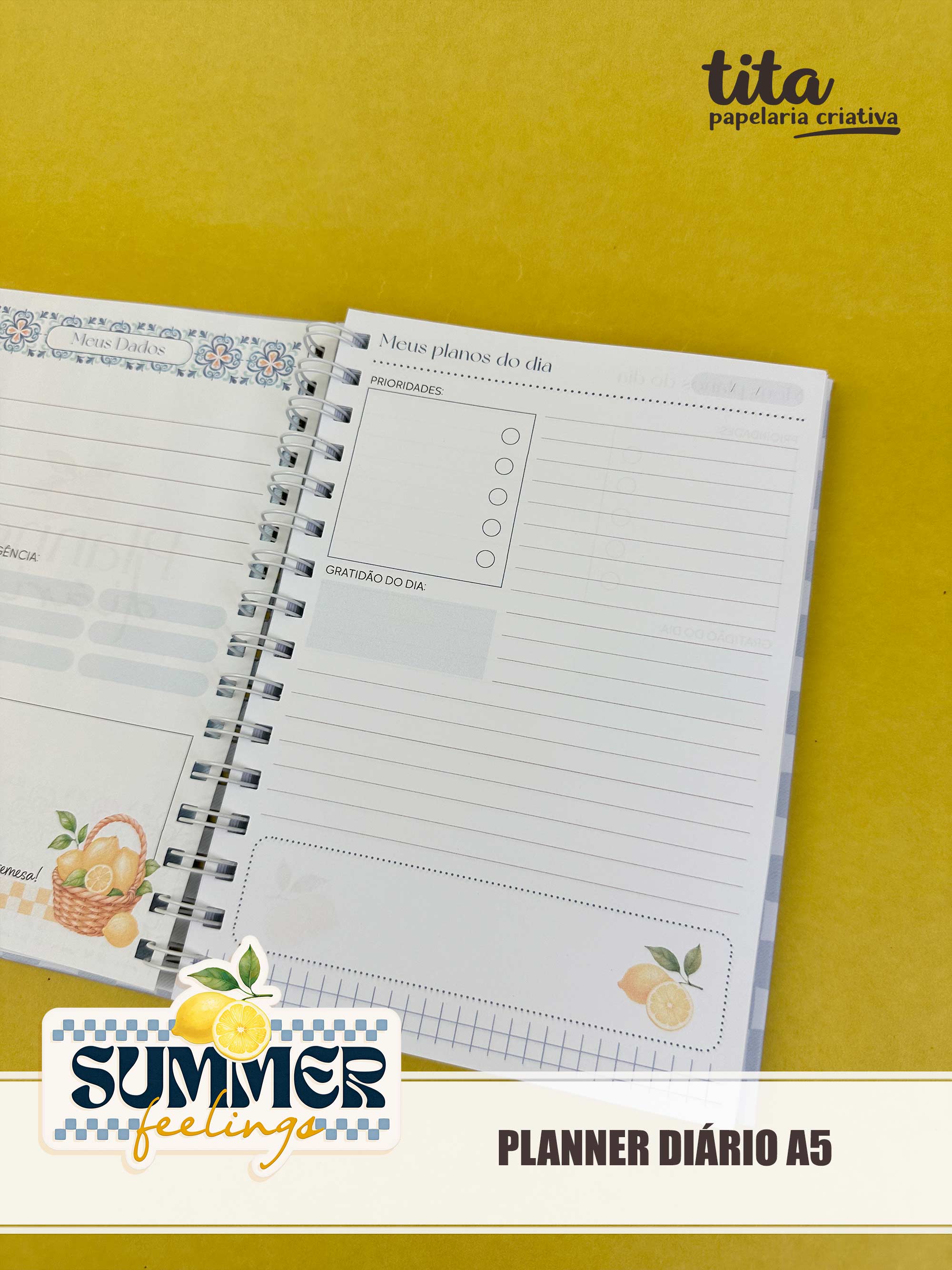 Summer Feelings - Planner Diário A5 dos exclusivamente por Paty Greif para o Tita Estúdio Criativo. Arquivos com resolução 300dpi.