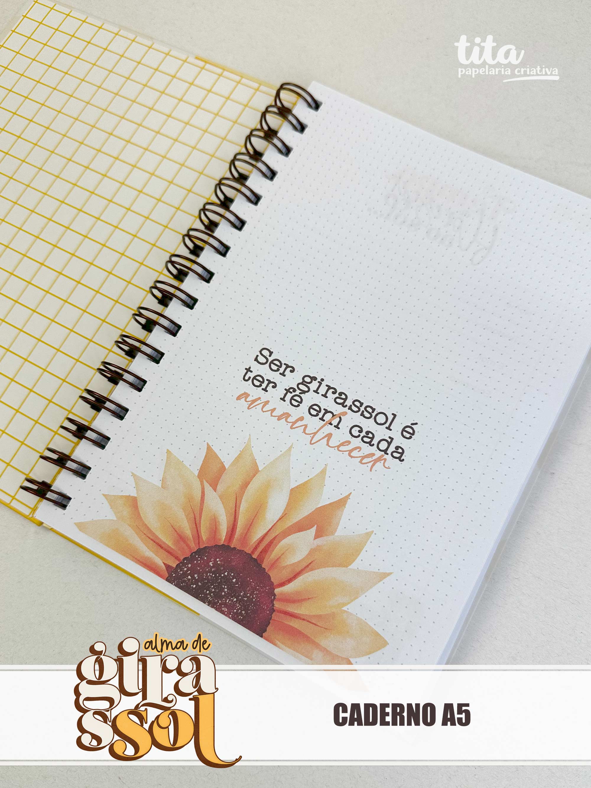 Alma de Girassol - Caderno A5 contém imagens exclusivas que tornarão os seus projetos mais encantadores. Criados exclusivamente por Paty Greif para o Tita Estúdio Criativo . Arquivos com resolução 300dpi.