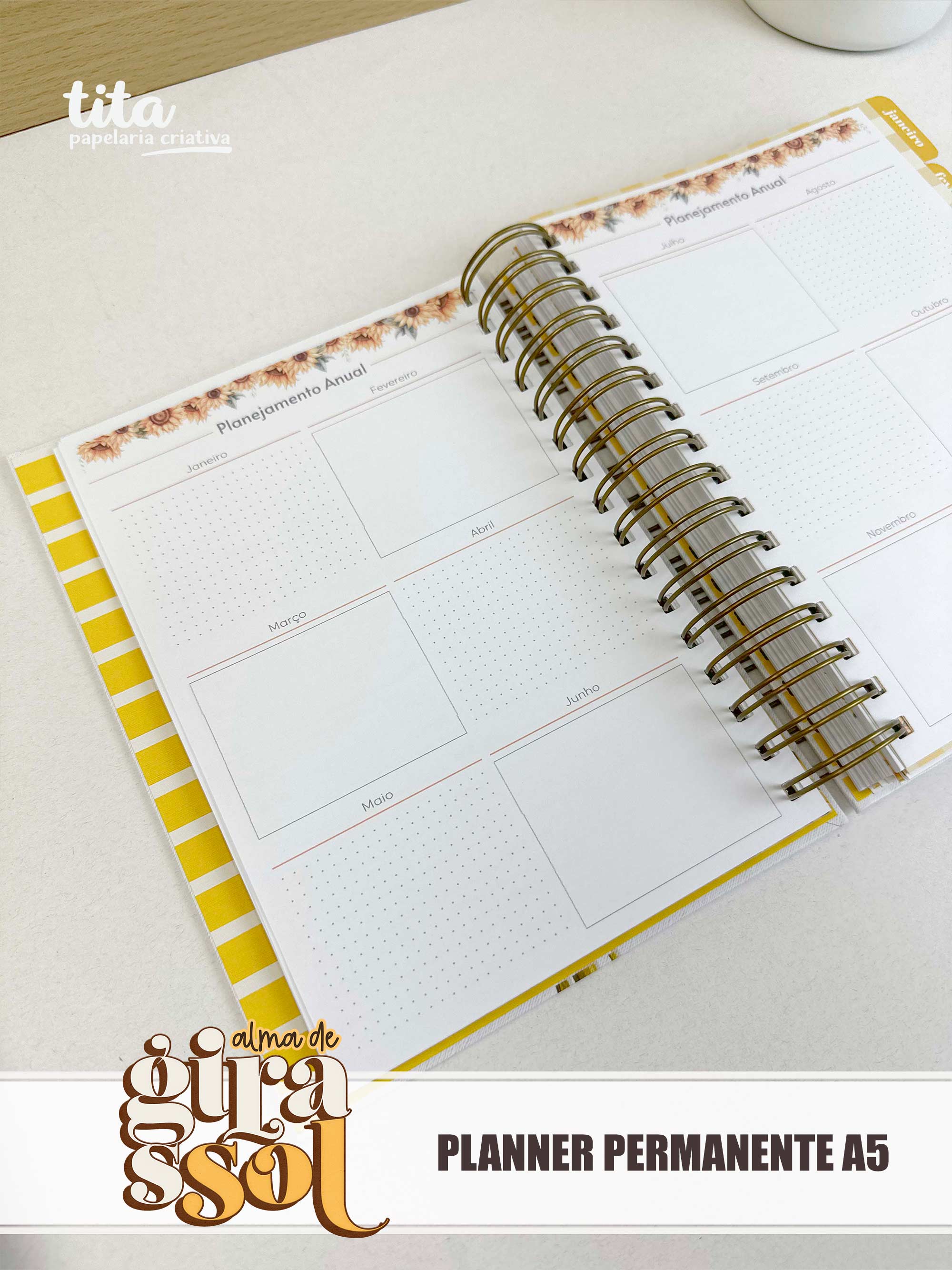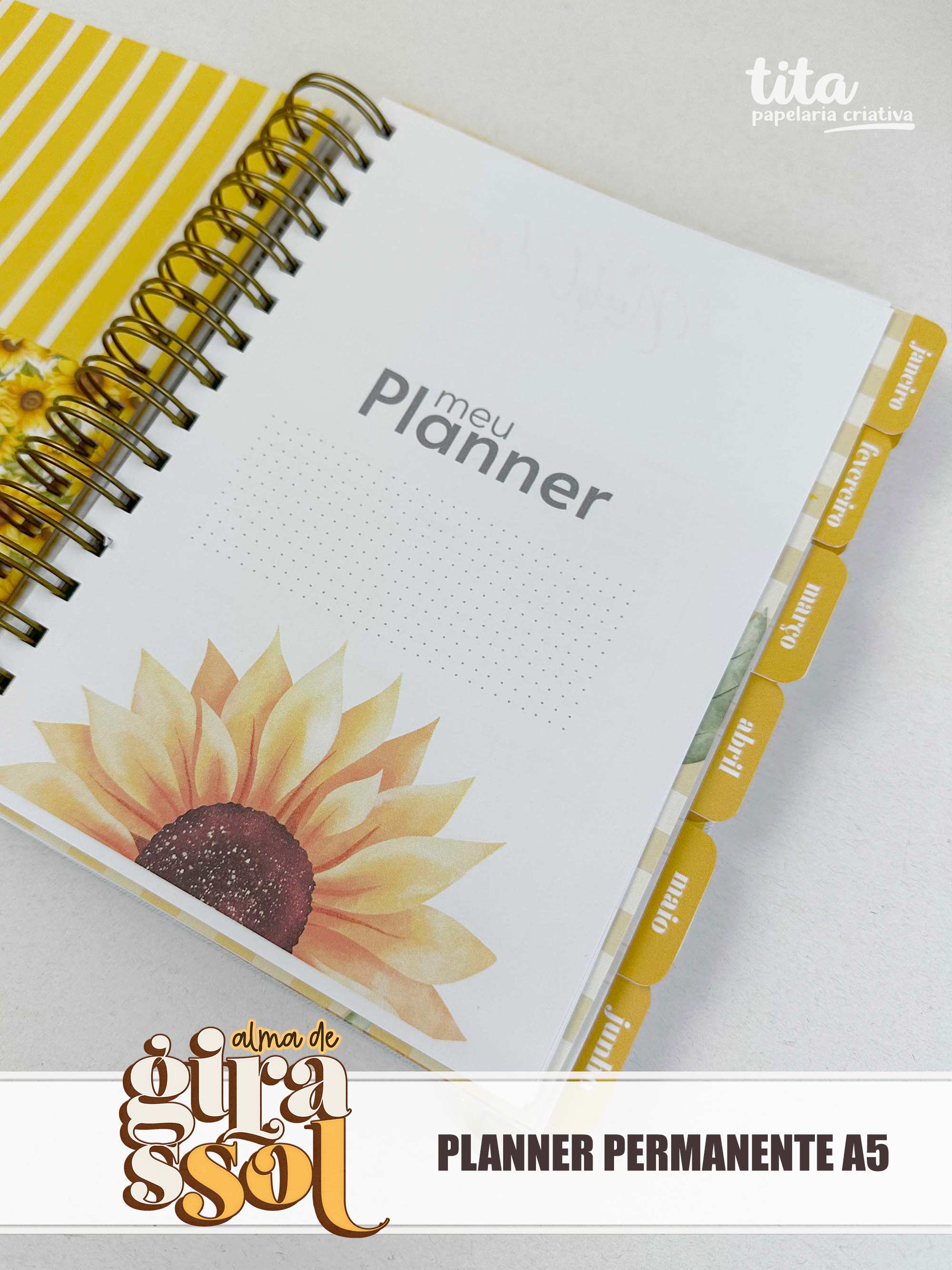 Planner A5 Permanente - miolo personalizado, divisórias, marcadores, adesivos, bolsinho e várias opções de capa.