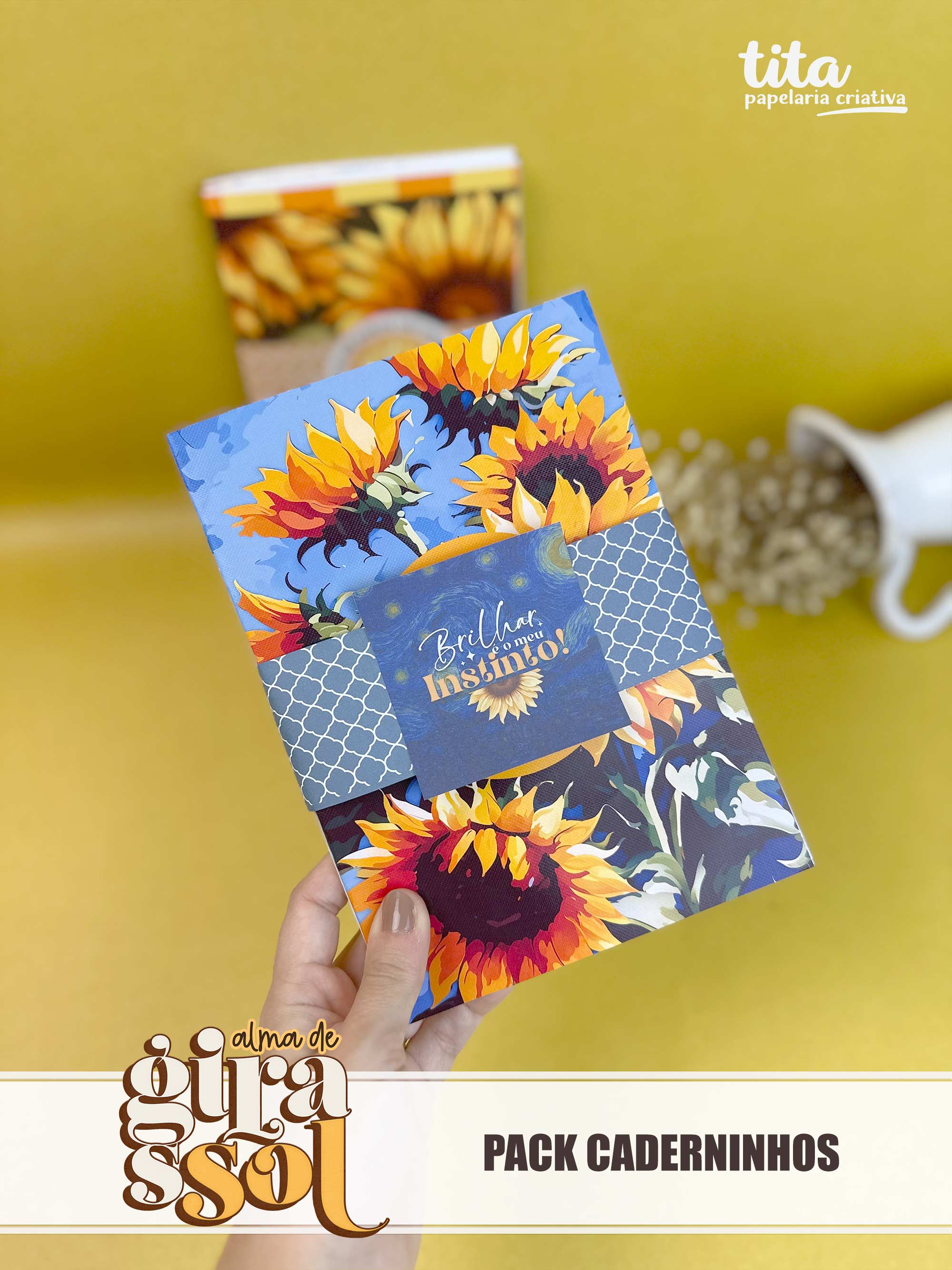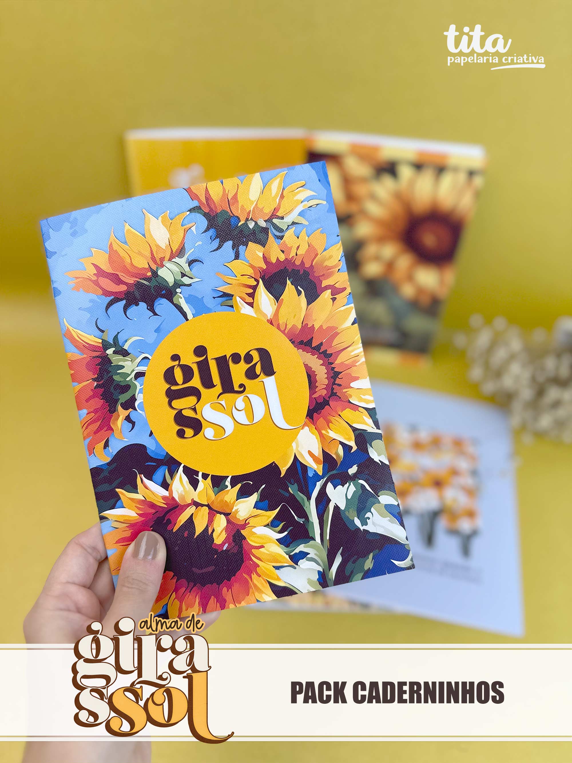 Alma de Girassol - Packs Caderninhos contém imagens exclusivas que tornarão os seus projetos mais encantadores. Criados exclusivamente por Paty Greif para o Tita Estúdio Criativo . Arquivos com resolução 300dpi.