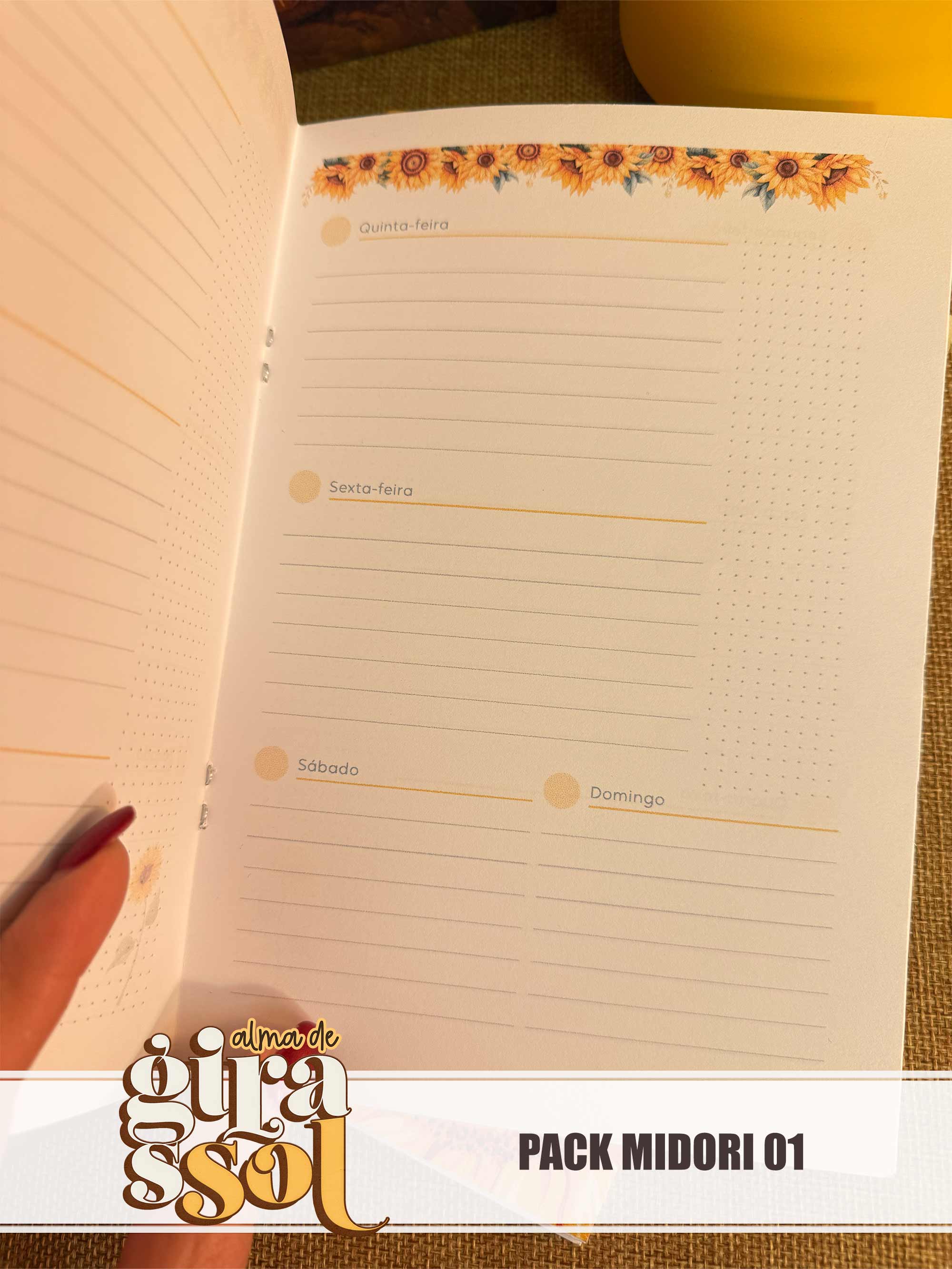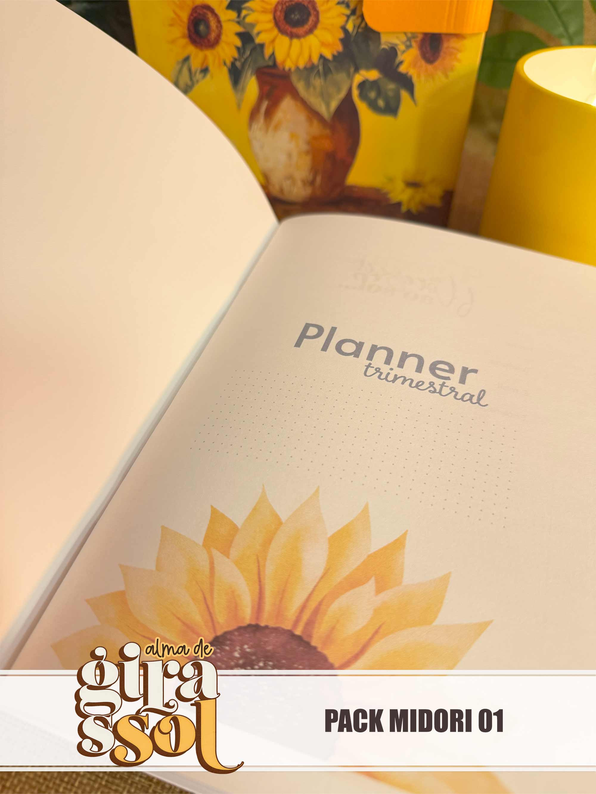 Pack Midori 01 - Miolo de planner TRIMESTRAL + Miolos Pautado, Pontilhado e Xadrez + Várias opções de capas EXTERNAS + várias opções de capas para o livreto (caderninho interno).
