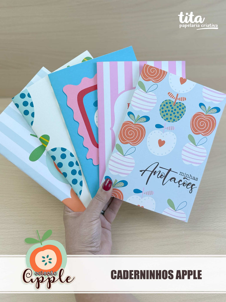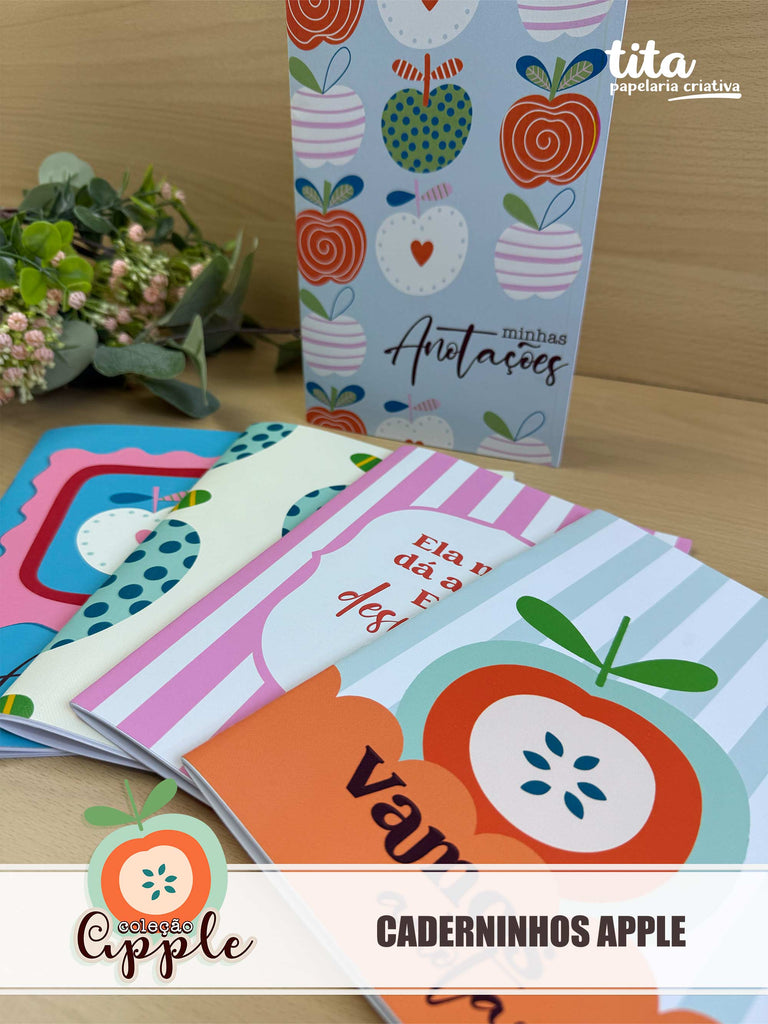 • Caderninhos Apple-  16 capas de caderninhos + miolo pauta, pontilhado e xadrez.