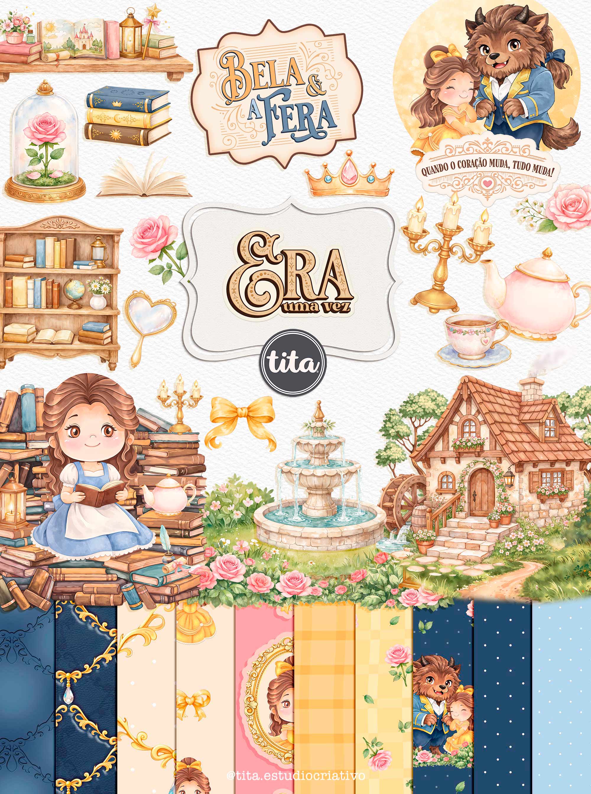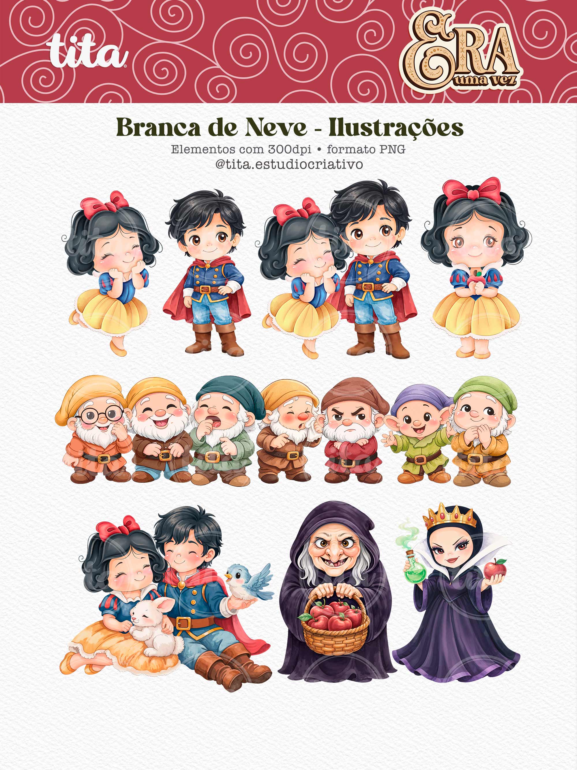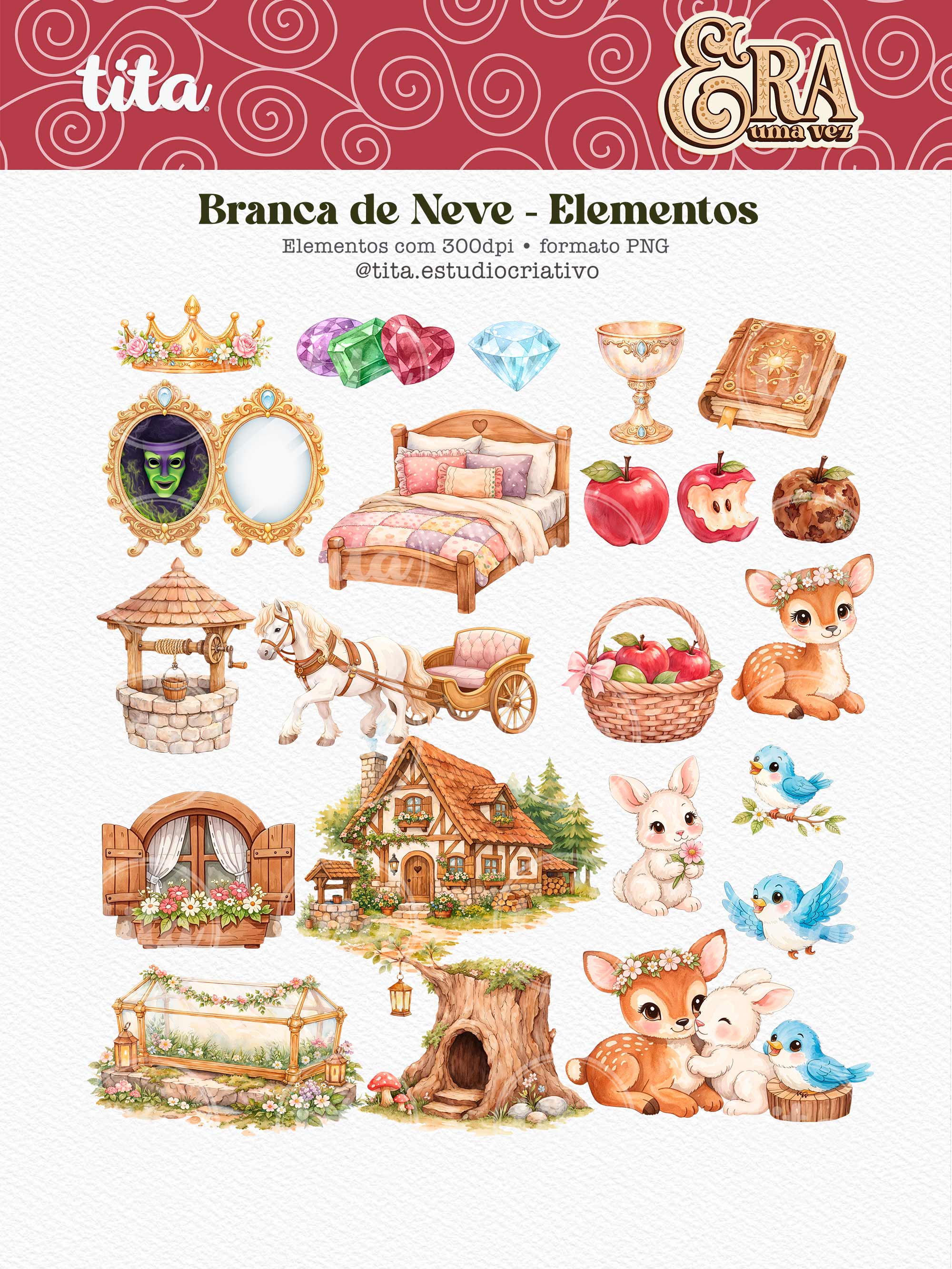 Era Uma Vez - VOLUME 01 contém imagens exclusivas que tornarão os seus projetos mais encantadores. Criados exclusivamente por Paty Greif para o Tita Estúdio Criativo . Arquivos com resolução 300dpi.