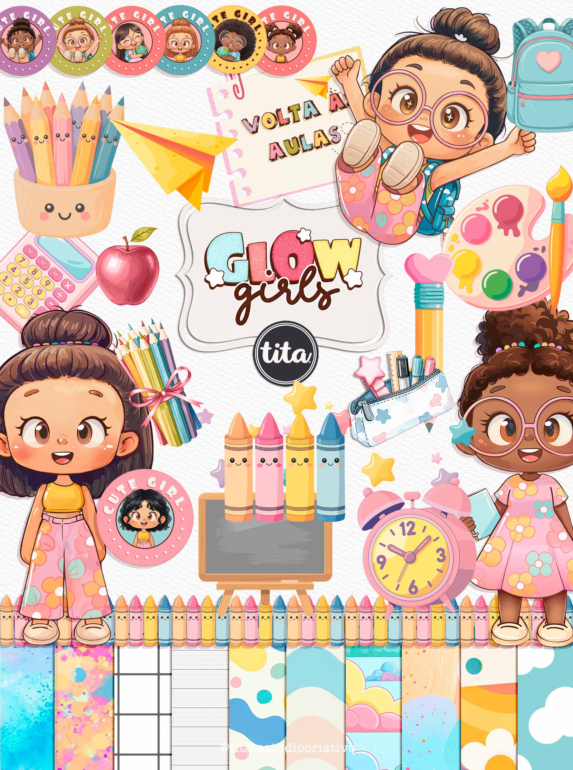 Escolar 2026 - Combão Ilustrações Menino + Menina contém imagens exclusivas que tornarão os seus projetos mais encantadores. Criados exclusivamente para o Tita Estúdio Criativo . Arquivos com resolução 300dpi.