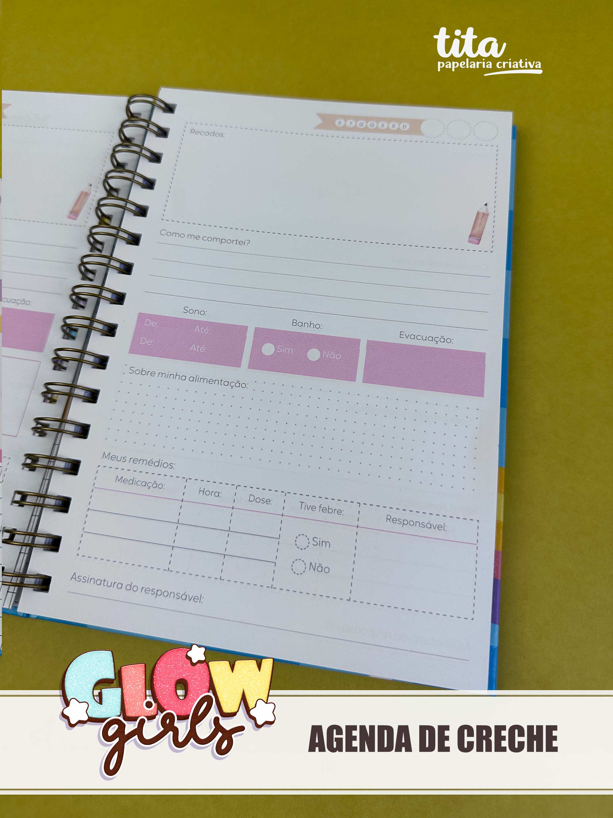 - Agenda Creche - Miolo Personalizado + Bolso + Várias Capas
