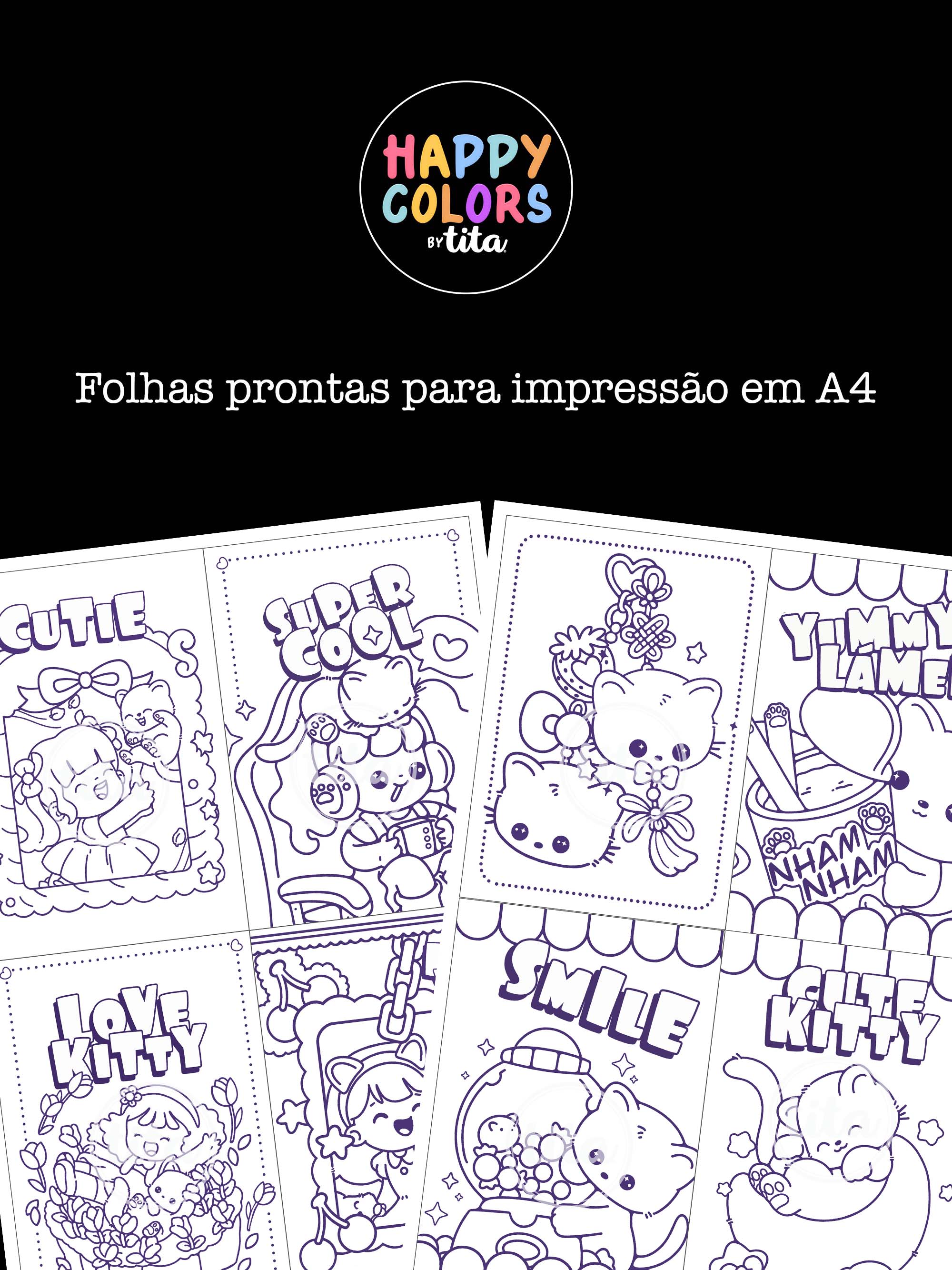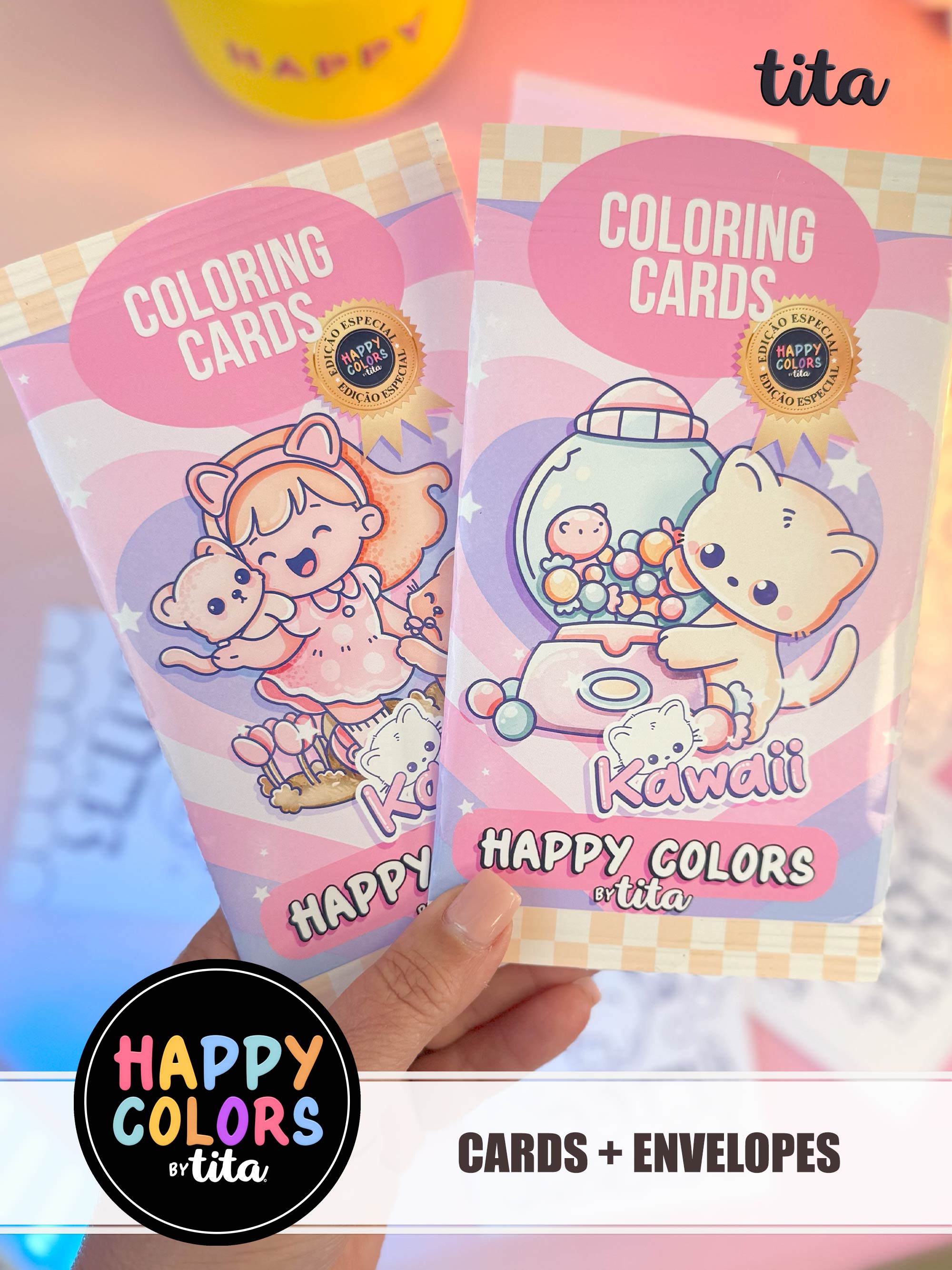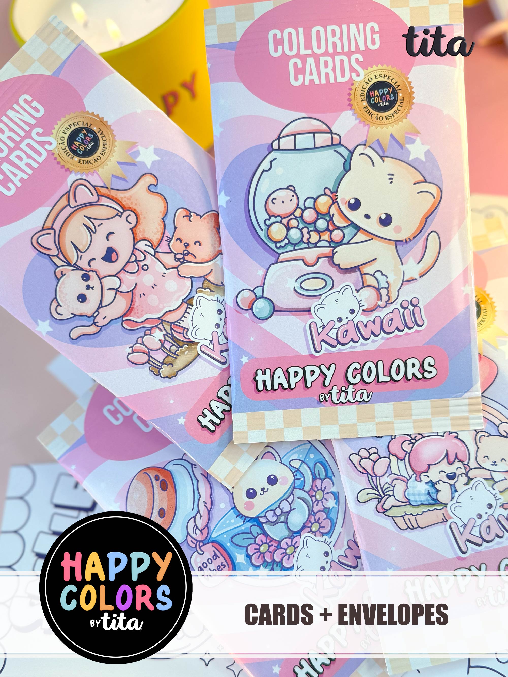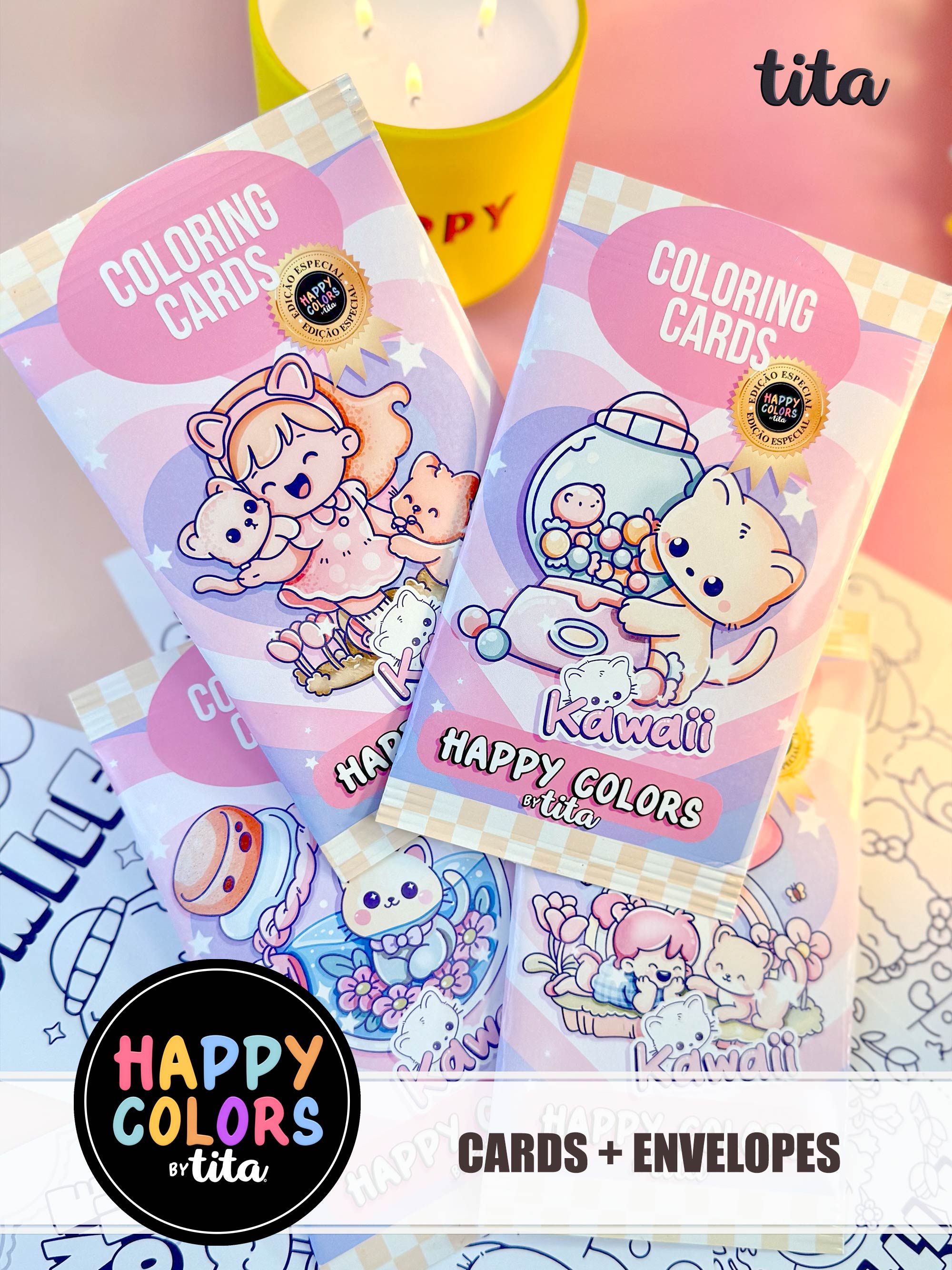 Happy Colors - Cards -Kawaii contém imagens exclusivas que tornarão os seus projetos mais encantadores. Criados exclusivamente para o Tita Estúdio Criativo.