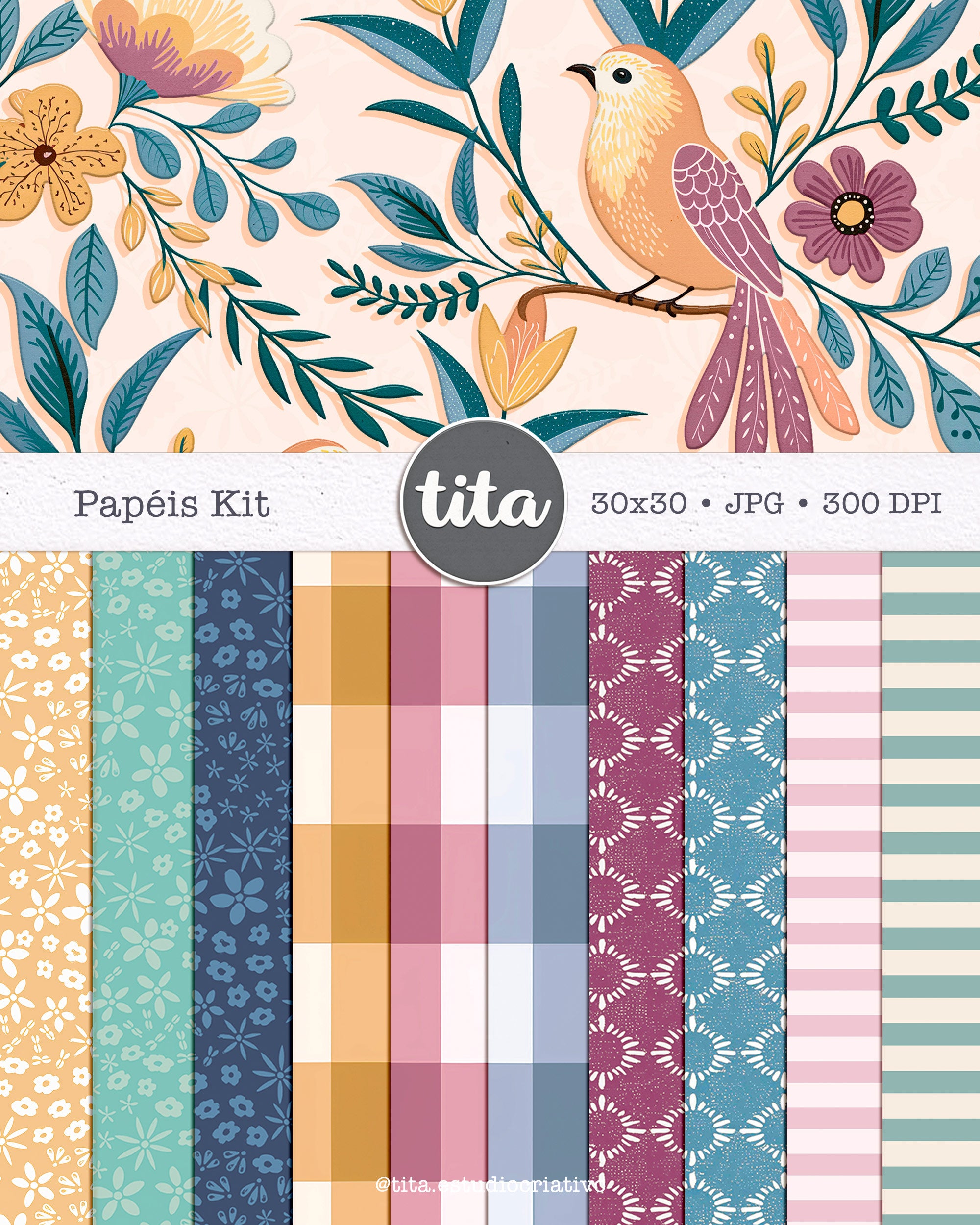Pássaros - Kit Digital e Papéis kit contém imagens exclusivas que tornarão os seus projetos mais encantadores. Criados exclusivamente por Paty Greif para o Tita Estúdio Criativo. Arquivos com resolução 300dpi.