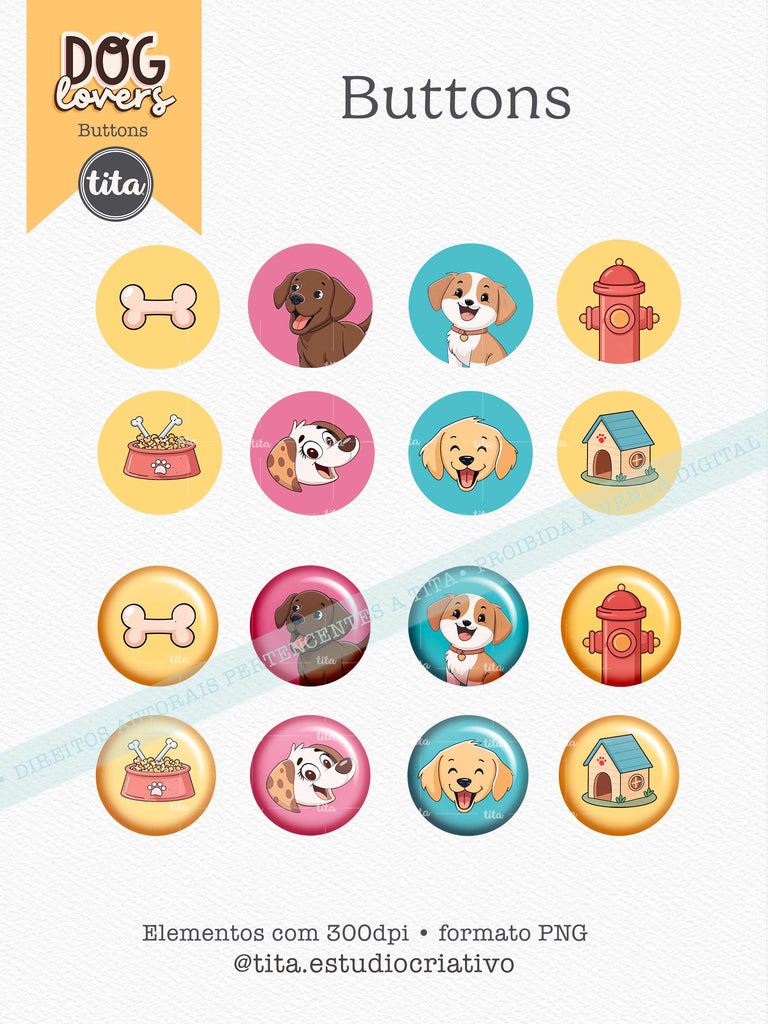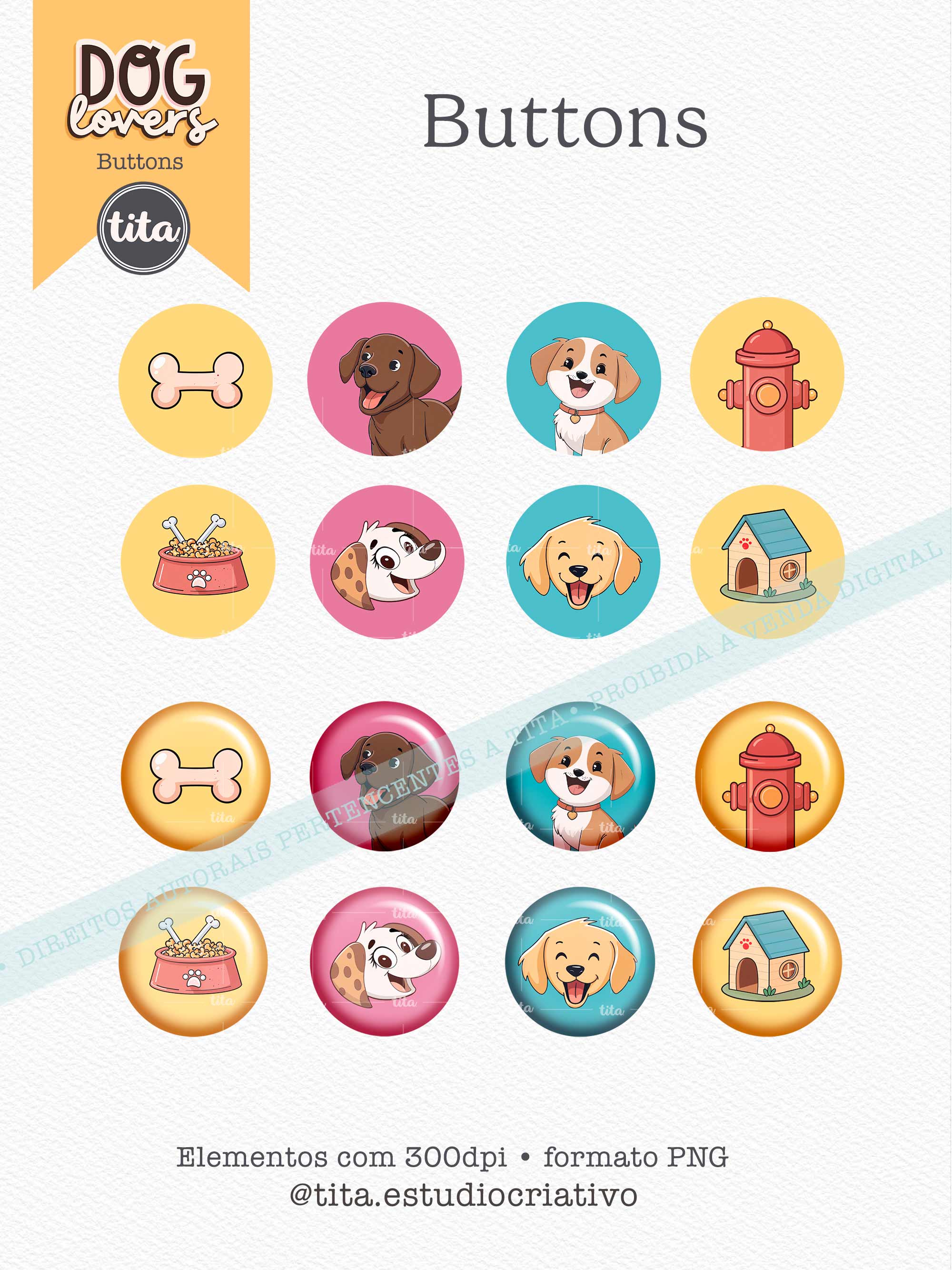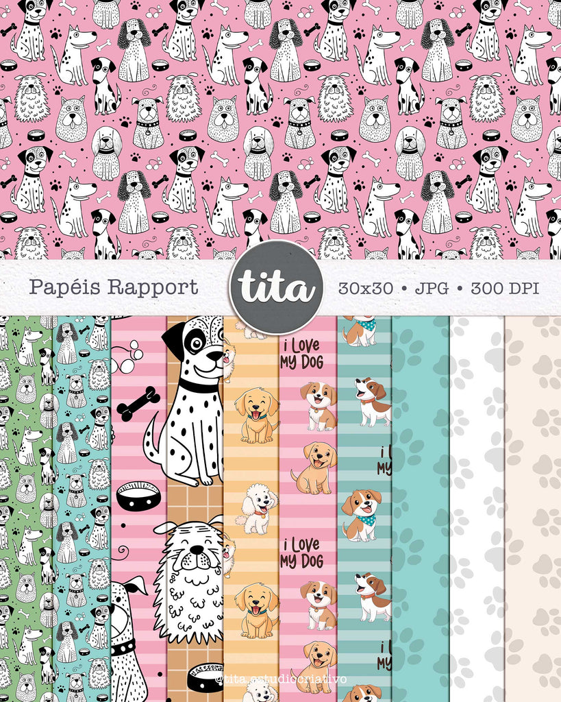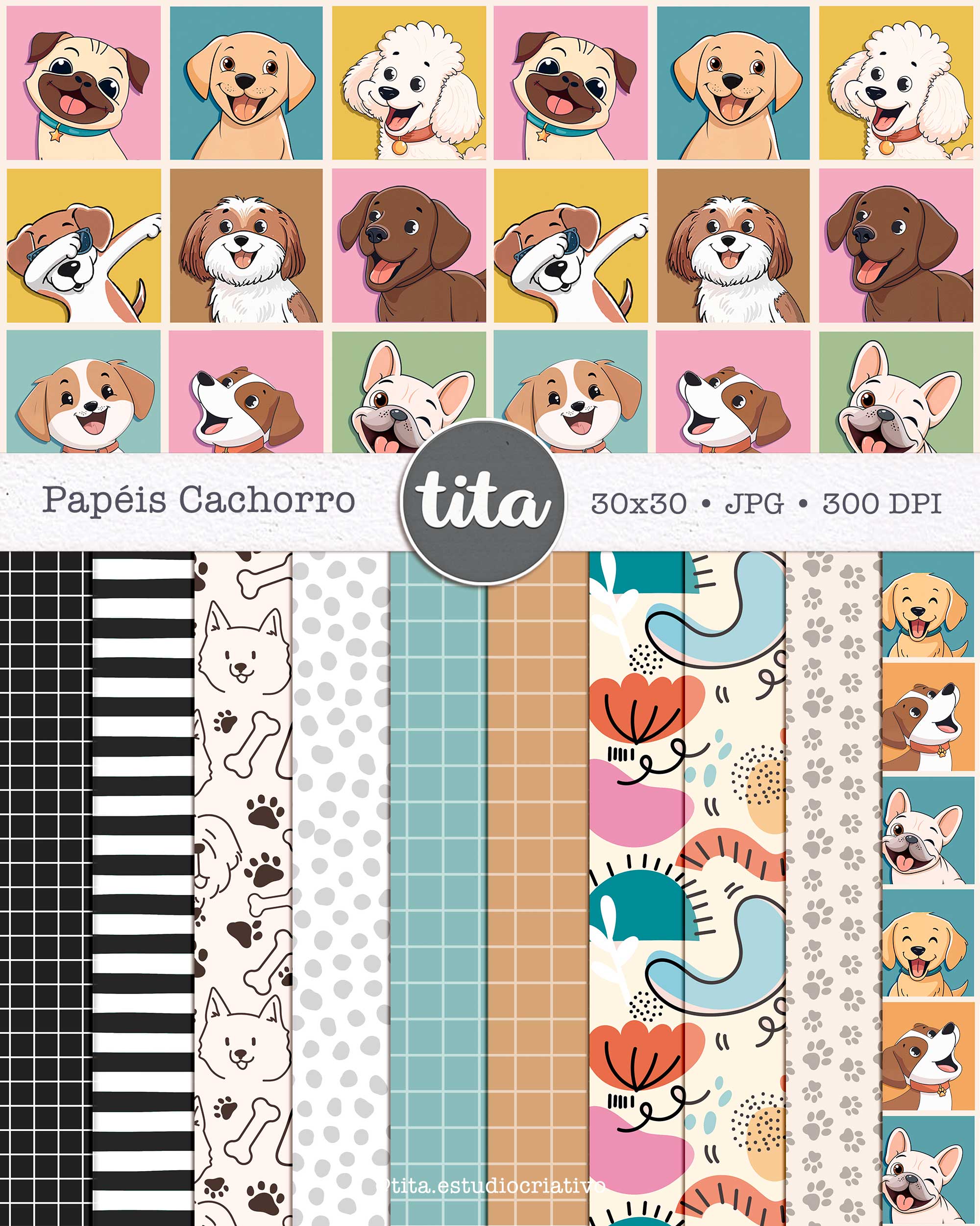 Pacote Cachorro com: Cachorros, Elementos, Letreiros, Buttons, Papéis Decor e Papéis Rapport