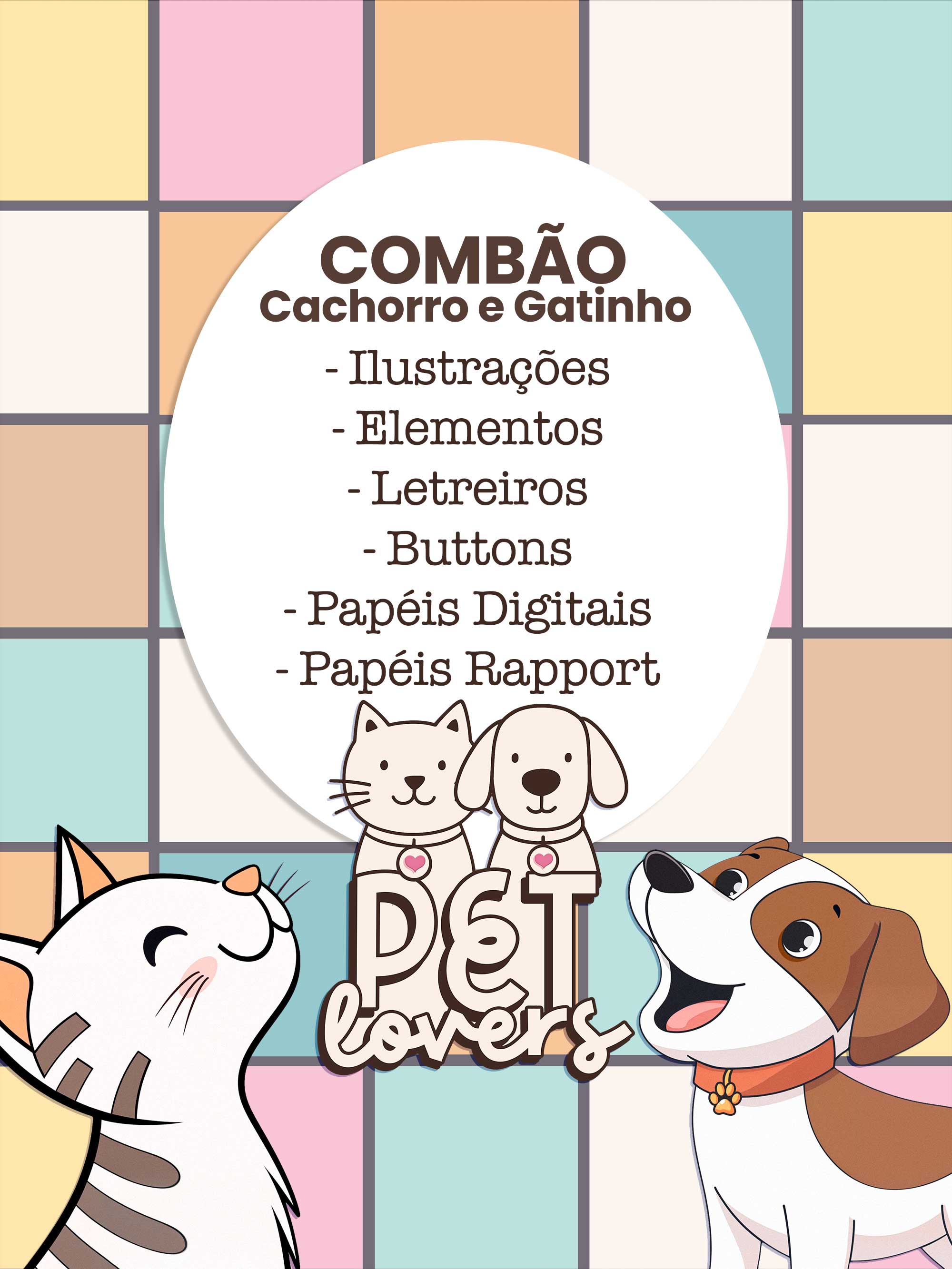 Pet Lovers - Combão Ilustrações Gato e Cachorro contém imagens exclusivas que tornarão os seus projetos mais encantadores. Criados exclusivamente por Paty Greif para o Tita Estúdio Criativo. Arquivos com resolução 300dpi.