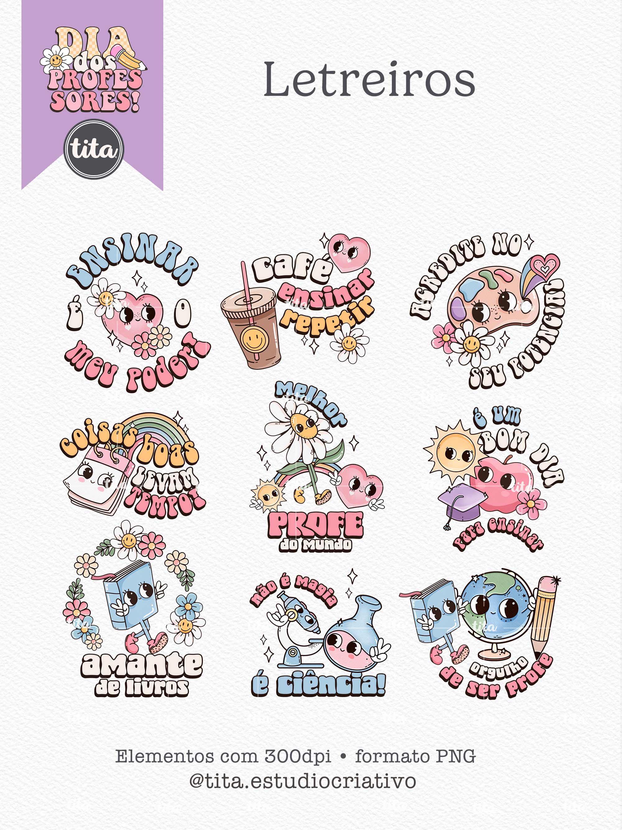 Professores 2025 - Letreiros contém imagens exclusivas que tornarão os seus projetos mais encantadores. Criados exclusivamente para o Tita Estúdio Criativo . Arquivos com resolução 300dpi.