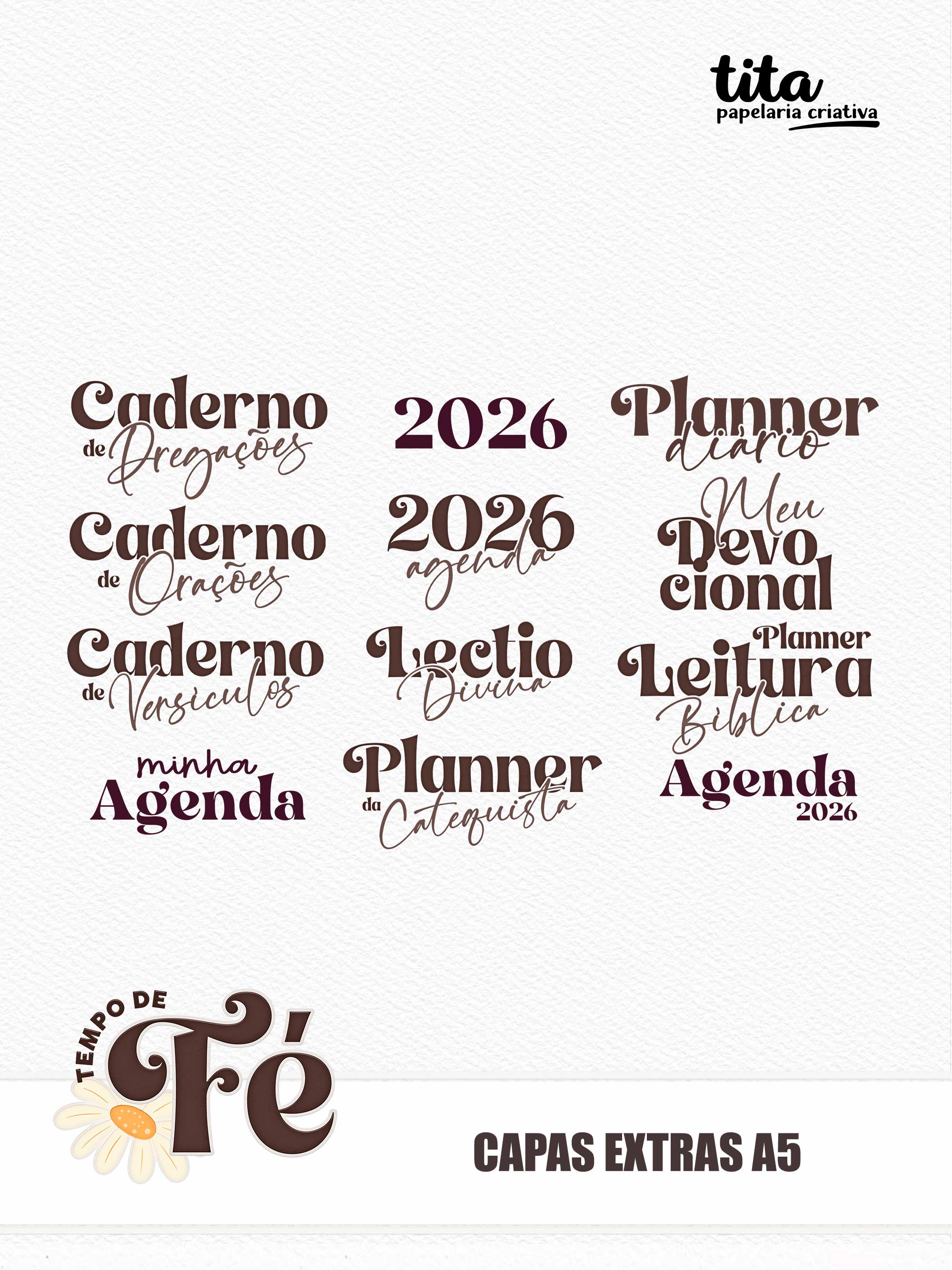 - Acompanha letreiros com nomes agenda, caderno de orações, para você adicionar nas capas.