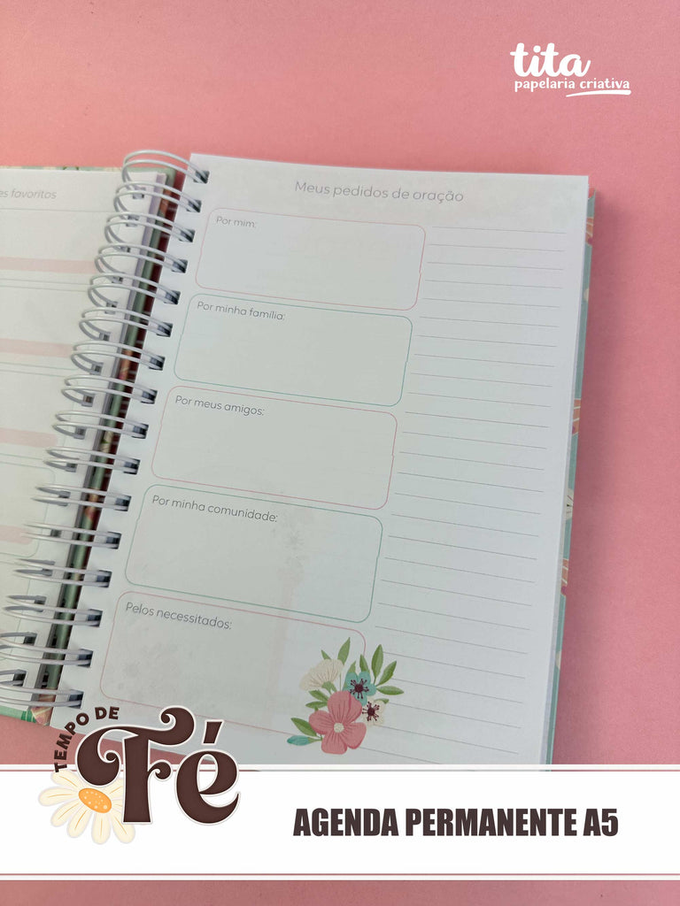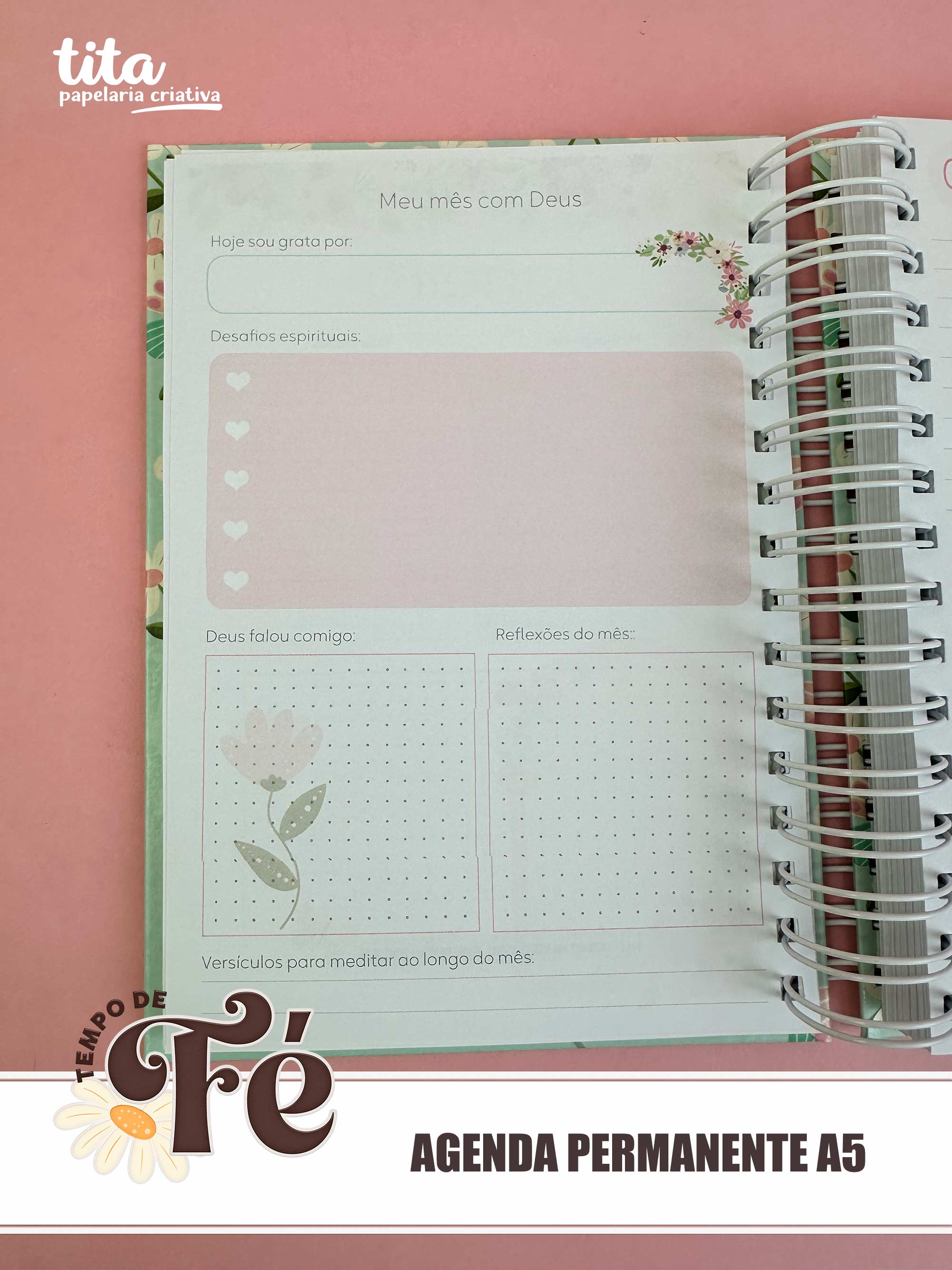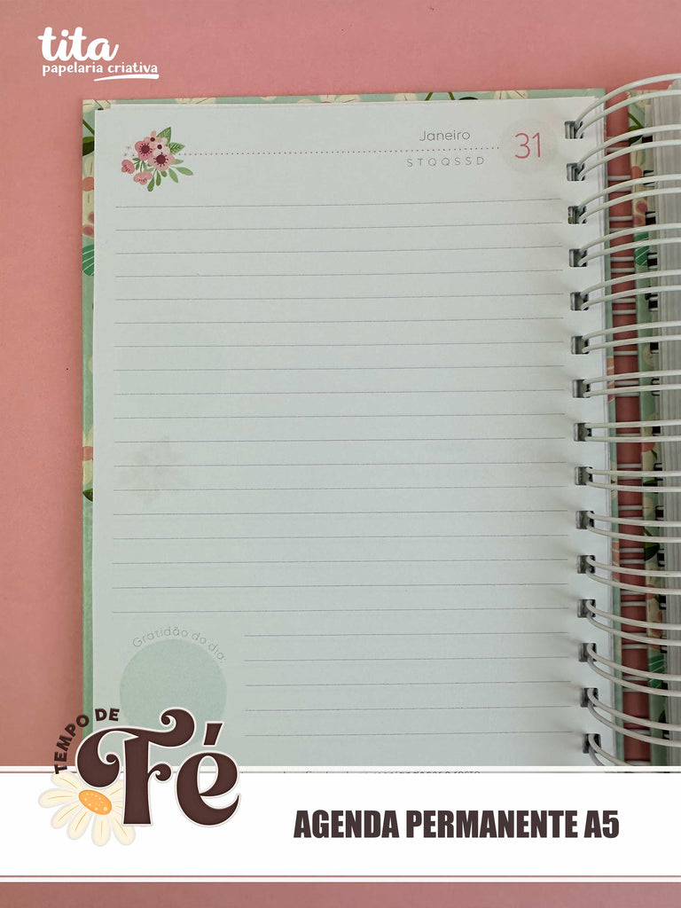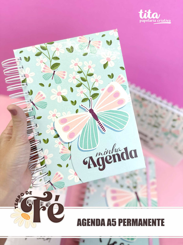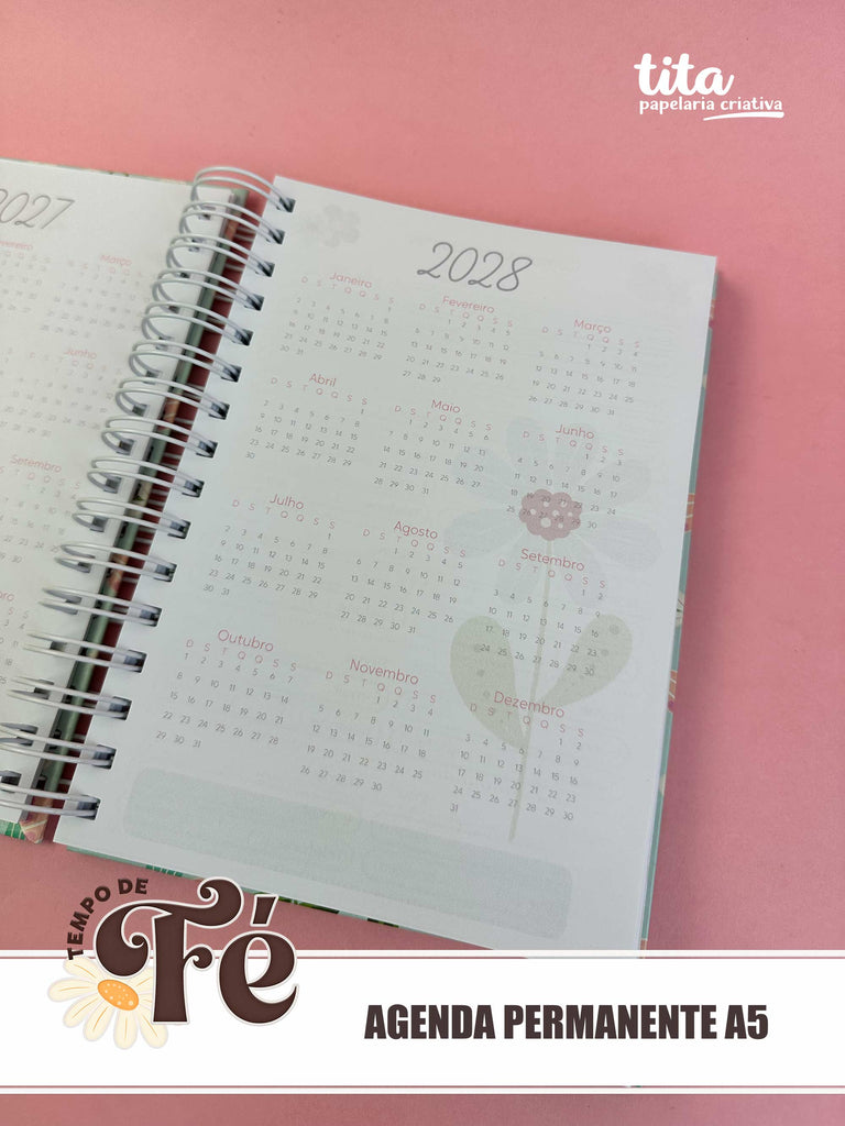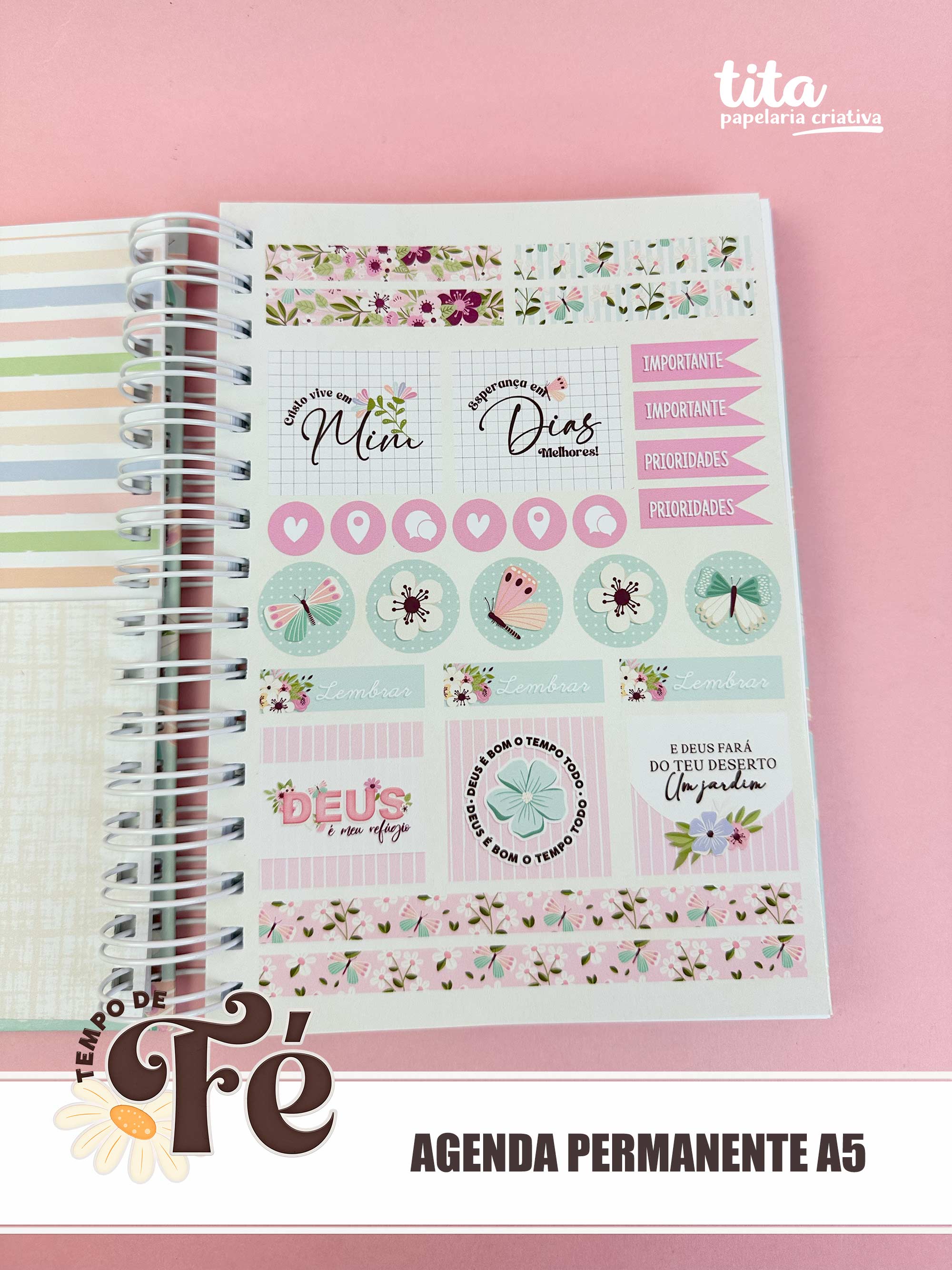 Agenda A5 Permanente - Miolo 1 e 2 dias por folha, adesivo, marcador e várias capas