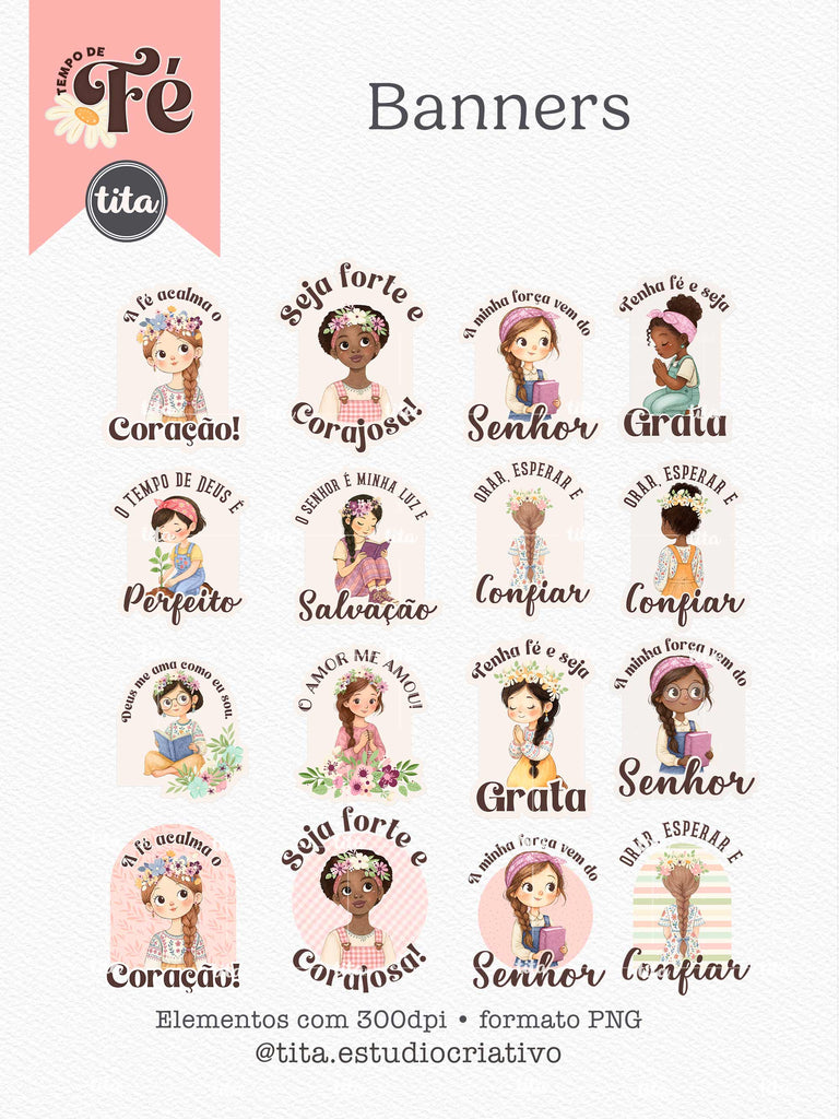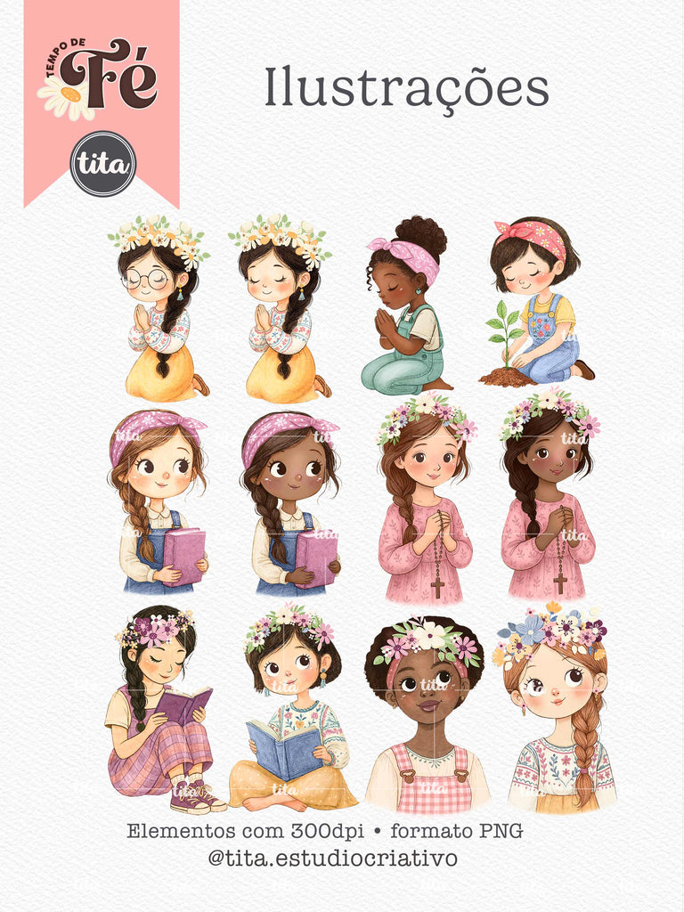 Tempo de Fé - Combo Ilustrações contém imagens exclusivas que tornarão os seus projetos mais encantadores. Criados exclusivamente por Paty Greif para o Tita Estúdio Criativo . Arquivos com resolução 300dpi.