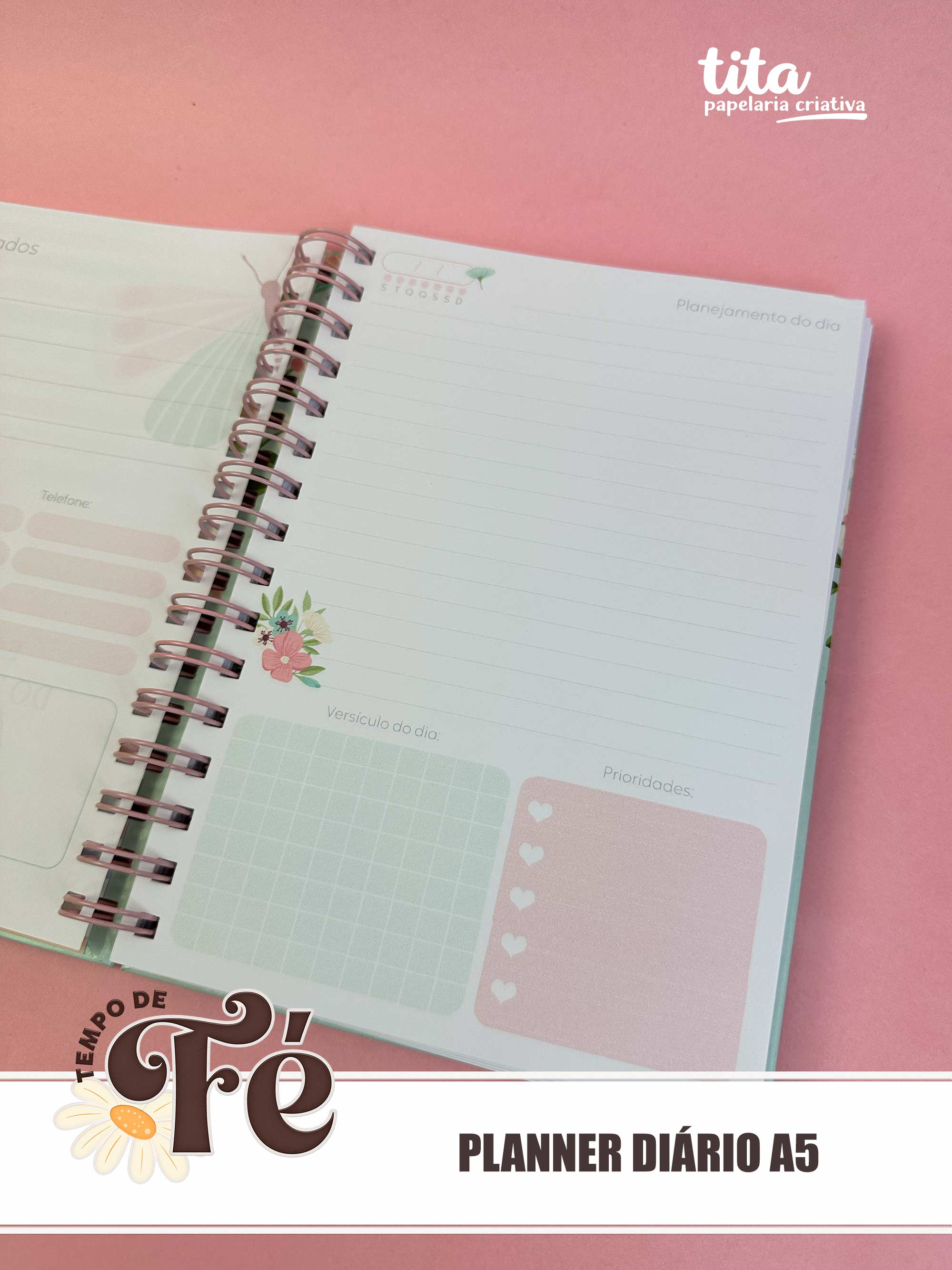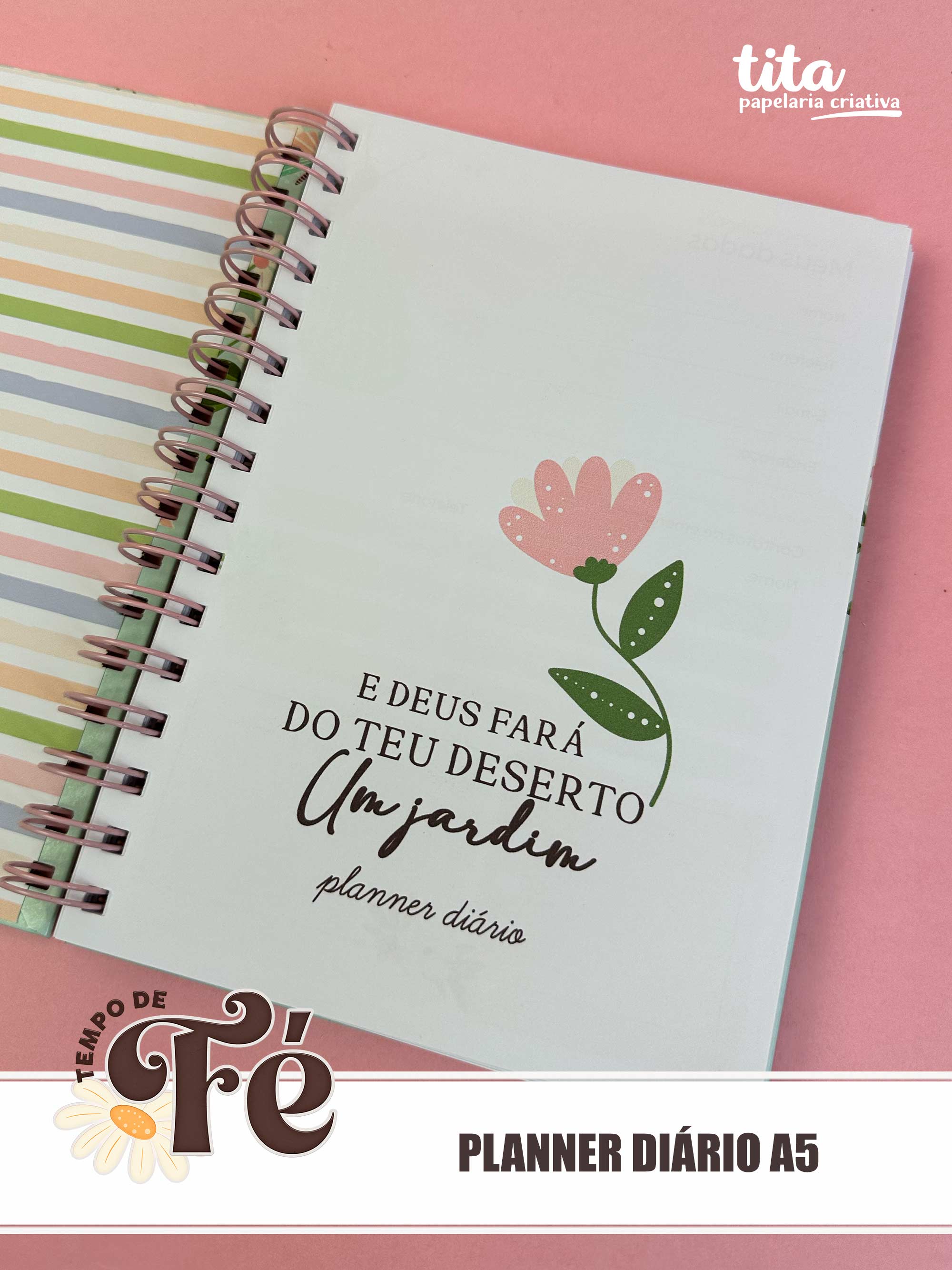 Tempo de Fé - Planner Diário A5 contém imagens exclusivas que tornarão os seus projetos mais encantadores. Criados exclusivamente por Paty Greif para o Tita Estúdio Criativo . Arquivos com resolução 300dpi.