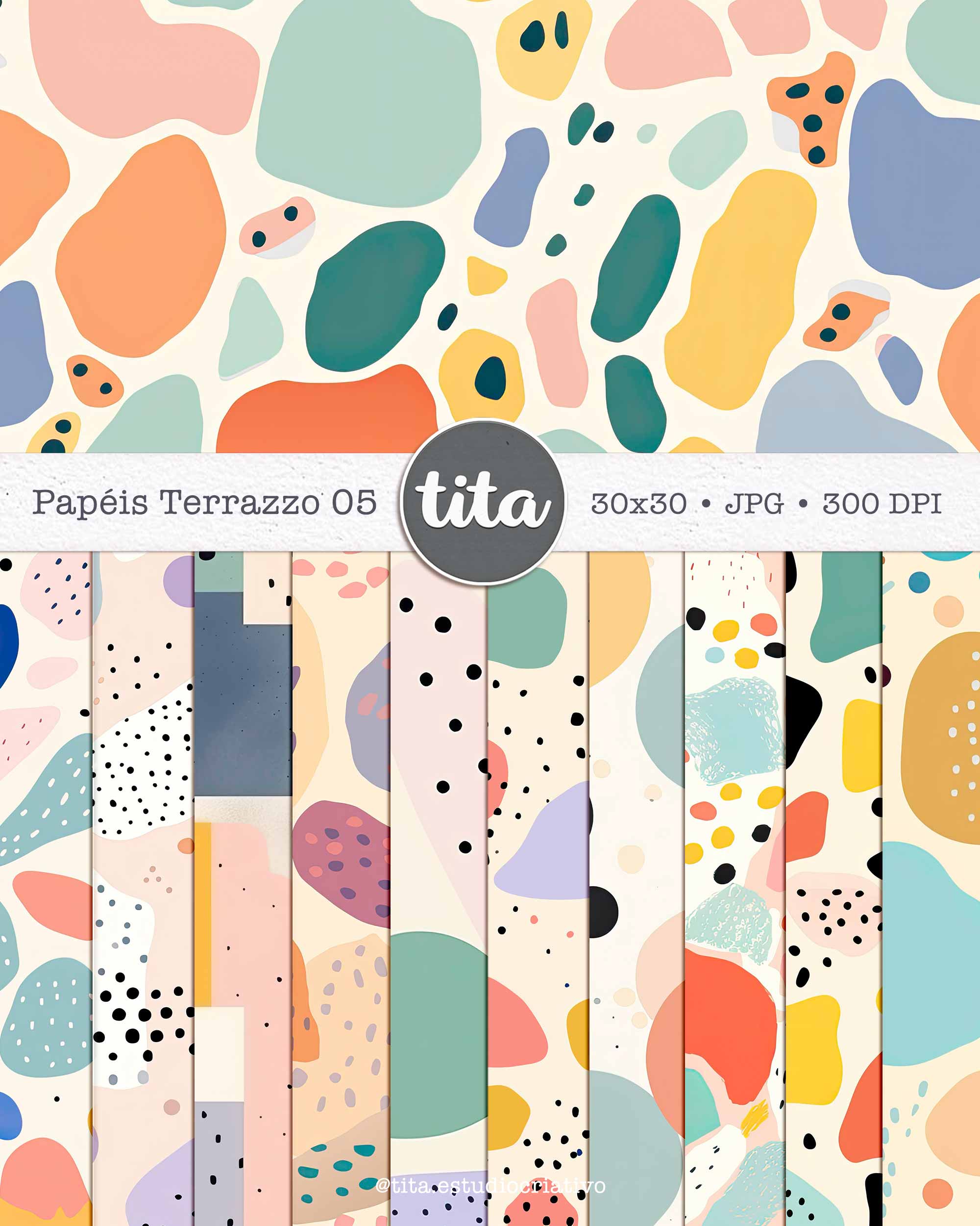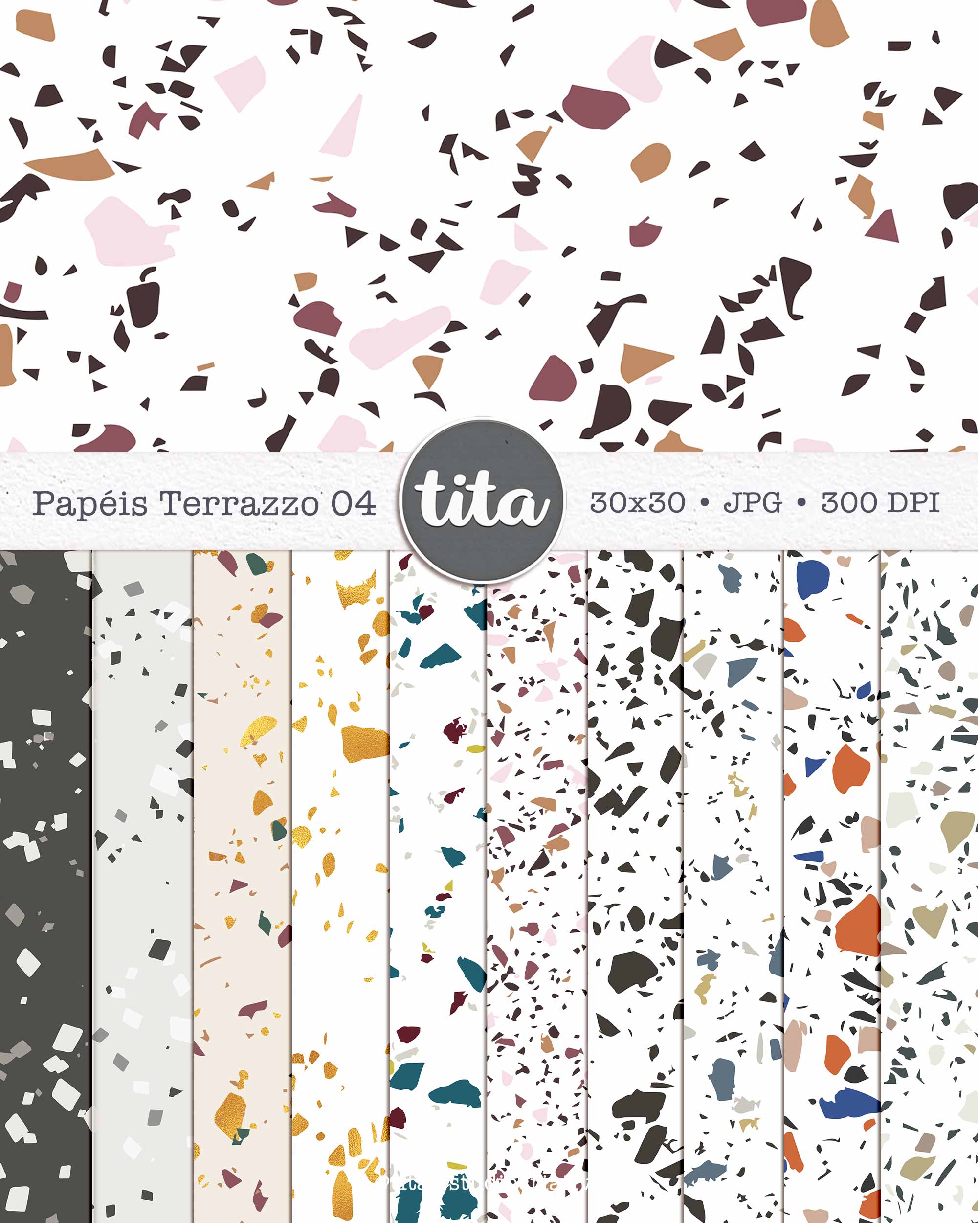 Terrazzo - Combo Papéis contém imagens exclusivas que tornarão os seus projetos mais encantadores. Criados exclusivamente por Paty Greif para o Tita Estúdio Criativo . Arquivos com resolução 300dpi.