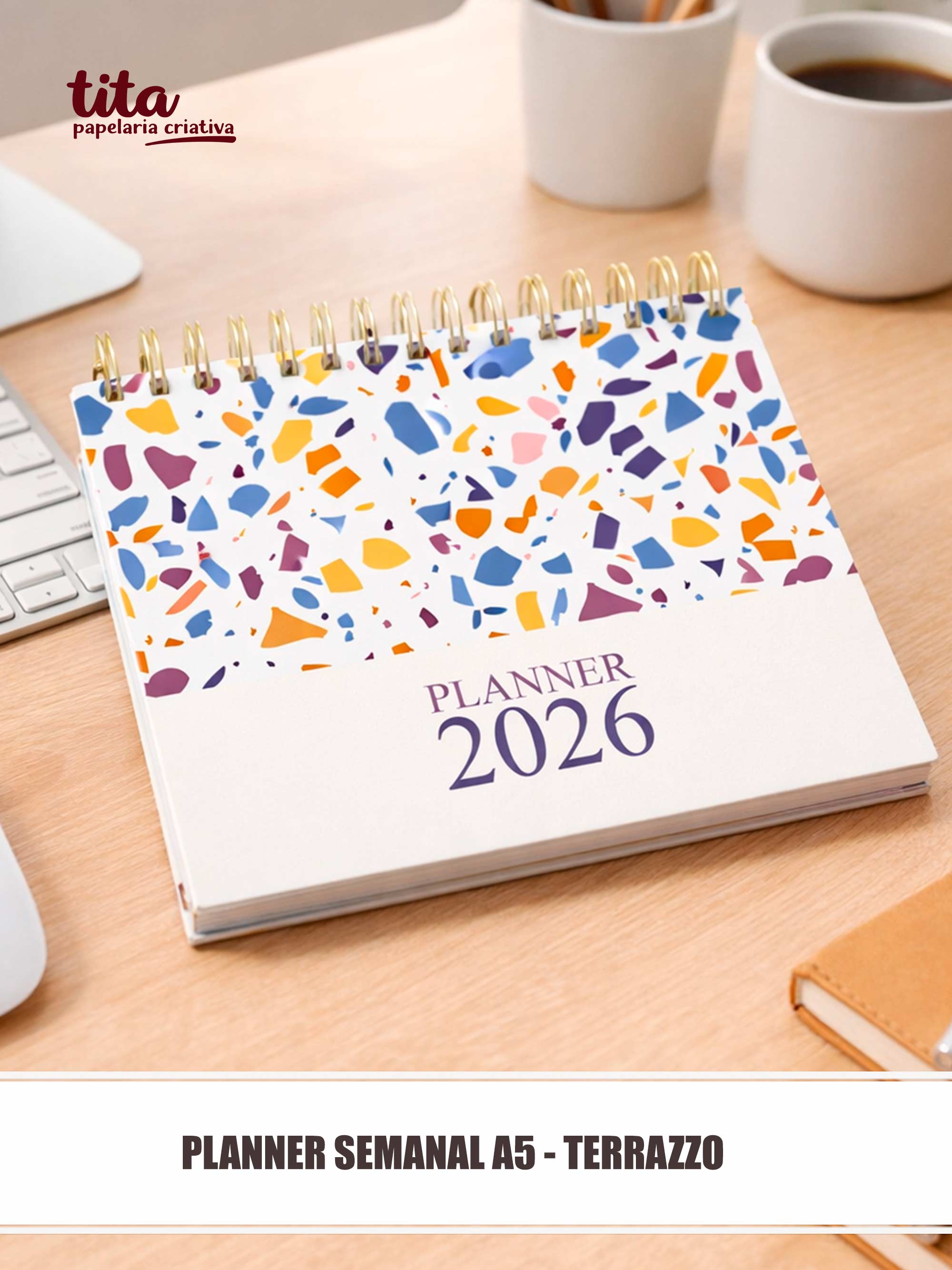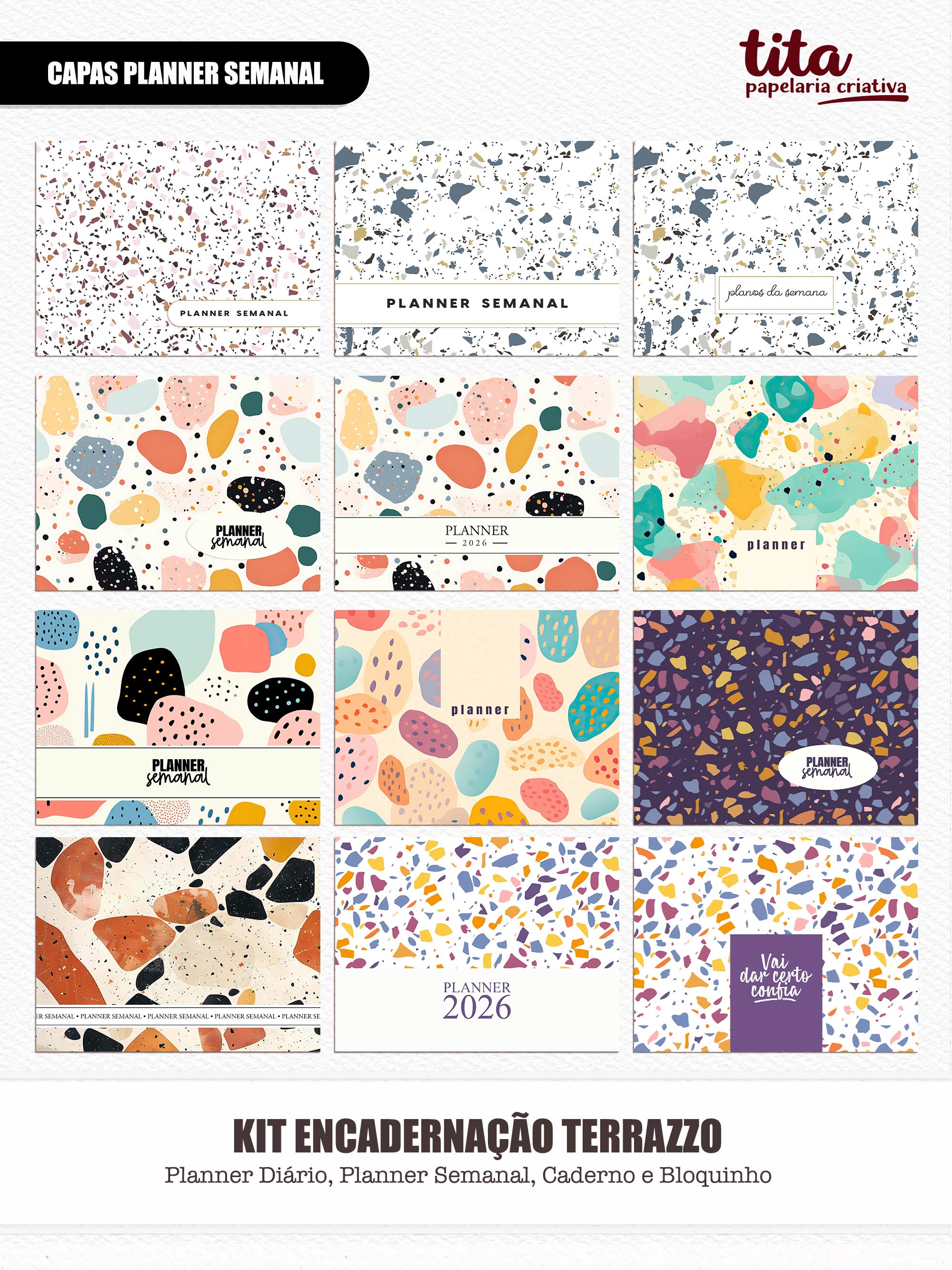 Terrazzo - Planner Semanal A5 contém imagens exclusivas que tornarão os seus projetos mais encantadores. Criados exclusivamente por Paty Greif para o Tita Estúdio Criativo . Arquivos com resolução 300dpi.
