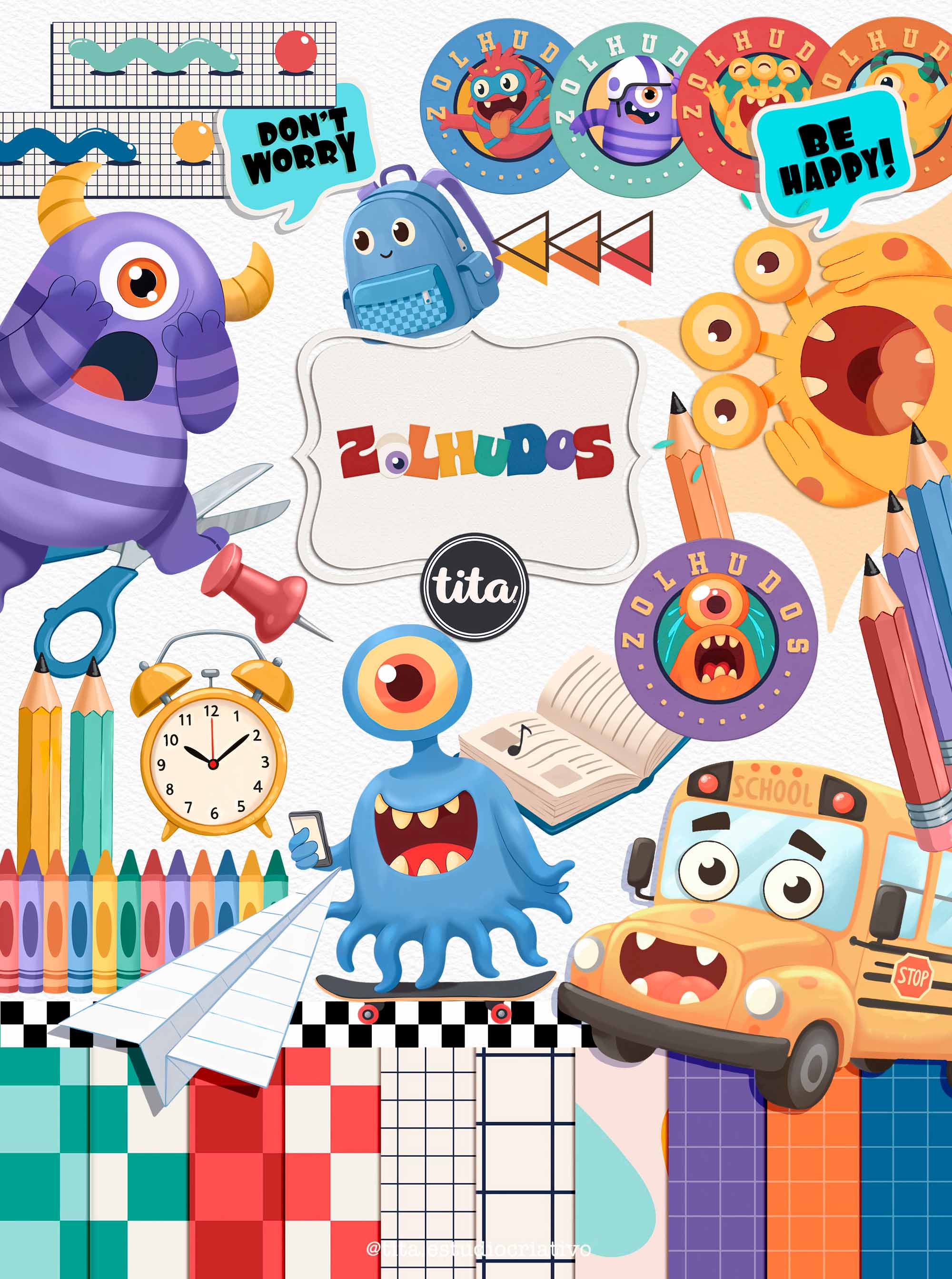 Zolhudos - Kit Digital + Papéis contém imagens exclusivas que tornarão os seus projetos mais encantadores. Criados exclusivamente para o Tita Estúdio Criativo . Arquivos com resolução 300dpi.